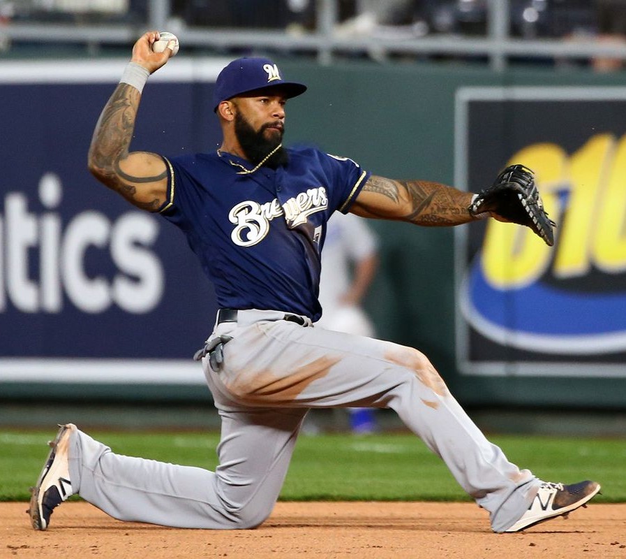 2016년 11월 29일 3+1년 계약을 체결했다.[82] 2017년에 주전 1루수로 활동하며 138경기에 출전해 2할대 타율, 116안타(31홈런), 63타점, OPS 0.877을 기록했다. 같은 해, 밀워키 브루어스와 3년 1600만달러 계약을 체결했고, 4년차에는 750만달러의 구단 옵션이 포함되었다.[26] KBO와 MLB 모두에서 시즌 30홈런 이상을 기록한 최초의 선수가 되었다.2017년 4월 3일, 1루수로 선발 출전하여 콜로라도 로키스와의 개막전에서 브루어스 데뷔전을 치렀다. 그는 4타수 1안타를 기록했고, 5회말 2점 적시타를 쳤으며, 2삼진을 당하고 1사사구를 얻었고, 1득점을 기록했다.[27] 4월 25일, 신시내티 레즈와의 경기에서 9-1 승리를 거두며 11번째 홈런을 기록, 브루어스 4월 한 달 최다 홈런 기록을 세웠다.[28]