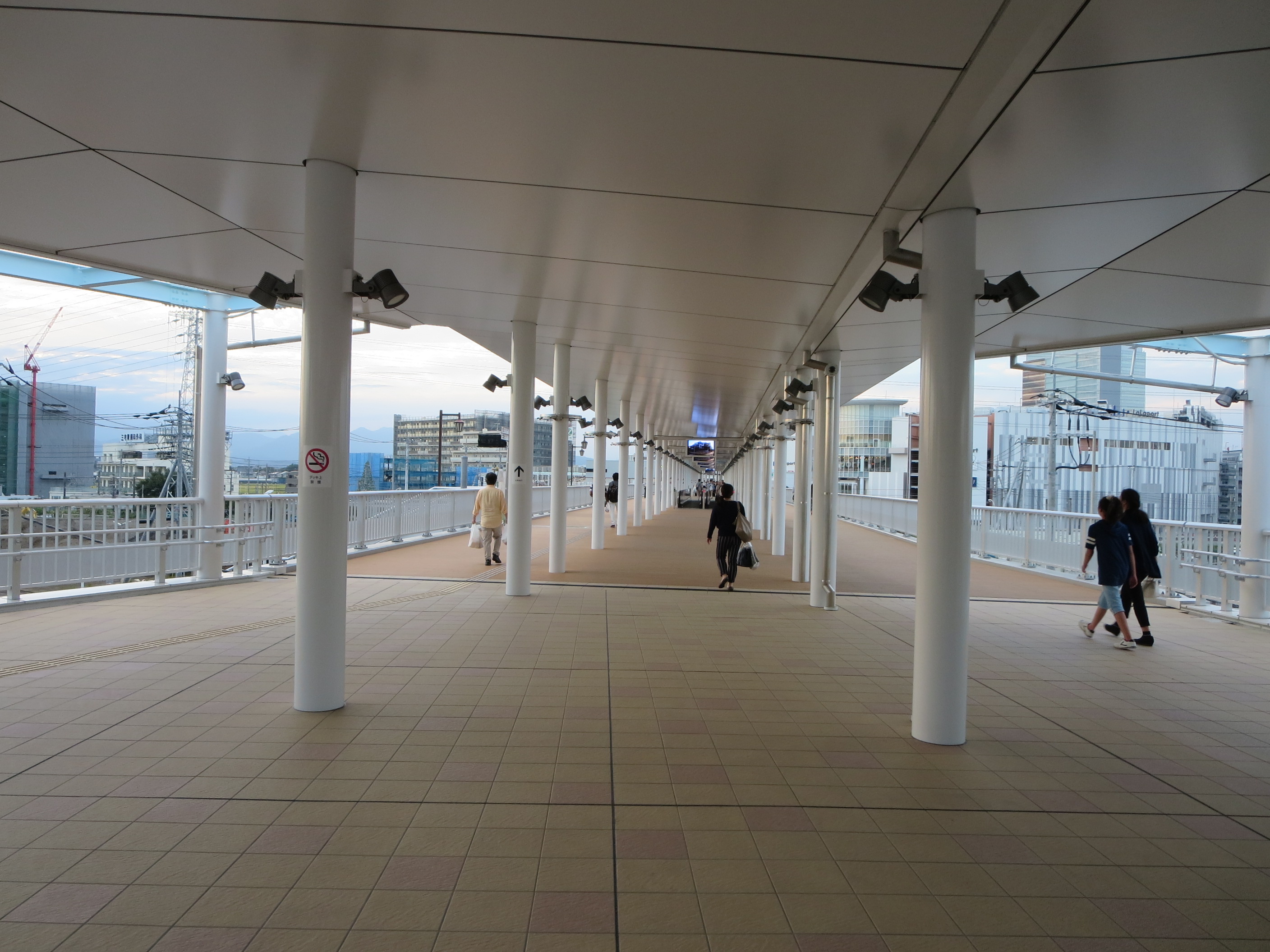 두 역 그룹 사이는 자유 통로로 연결되어 있으며, 과거에는 거리가 있어 환승이 다소 불편했으나, 2015년 10월 역 주변 재개발과 함께 무빙워크가 설치된 새로운 자유 통로가 정비되어 환승 편의성이 개선되었다. 이 자유 통로는 라라포트 에비나와도 연결된다.