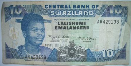 10 에말랑게니 | 므스와티 3세 | 은크왈라(왕위 즉위식)의 공주들 | 므스와티 3세 국왕 및 액면가 숫자 |