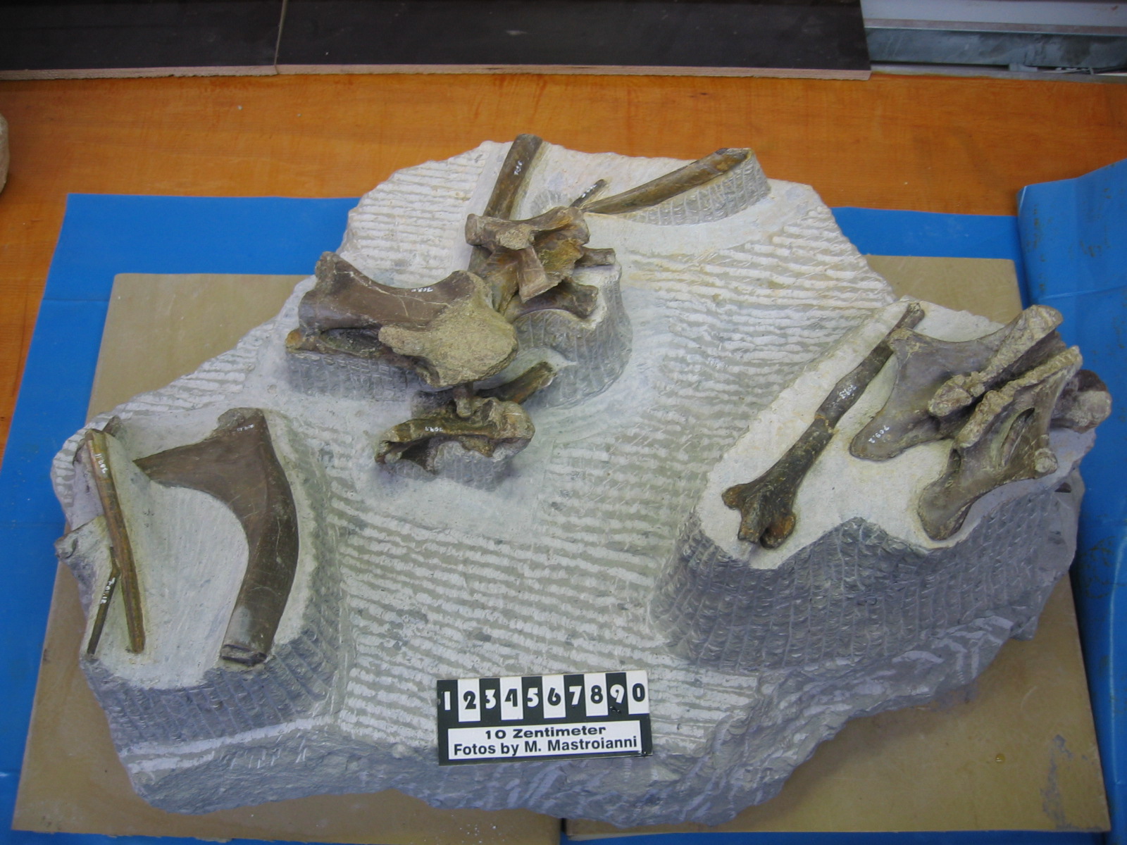 발견된 화석들은 하노버 근처의 뮌헤하겐 공룡 공원(DFMMh)에서 보관 및 정리가 이루어졌다. 화석의 보존 상태가 매우 좋아 주변 암석과 쉽게 분리되어 비교적 빠르게 작업을 진행할 수 있었다. 2001년 1월까지 200개의 척추동물 뼈 화석이 정리되었고,[3] 2002년 1월에는 더 큰 암석 블록에서 부분적인 용각류 두개골 화석이 유럽 최초로 발견되었다.[2]
