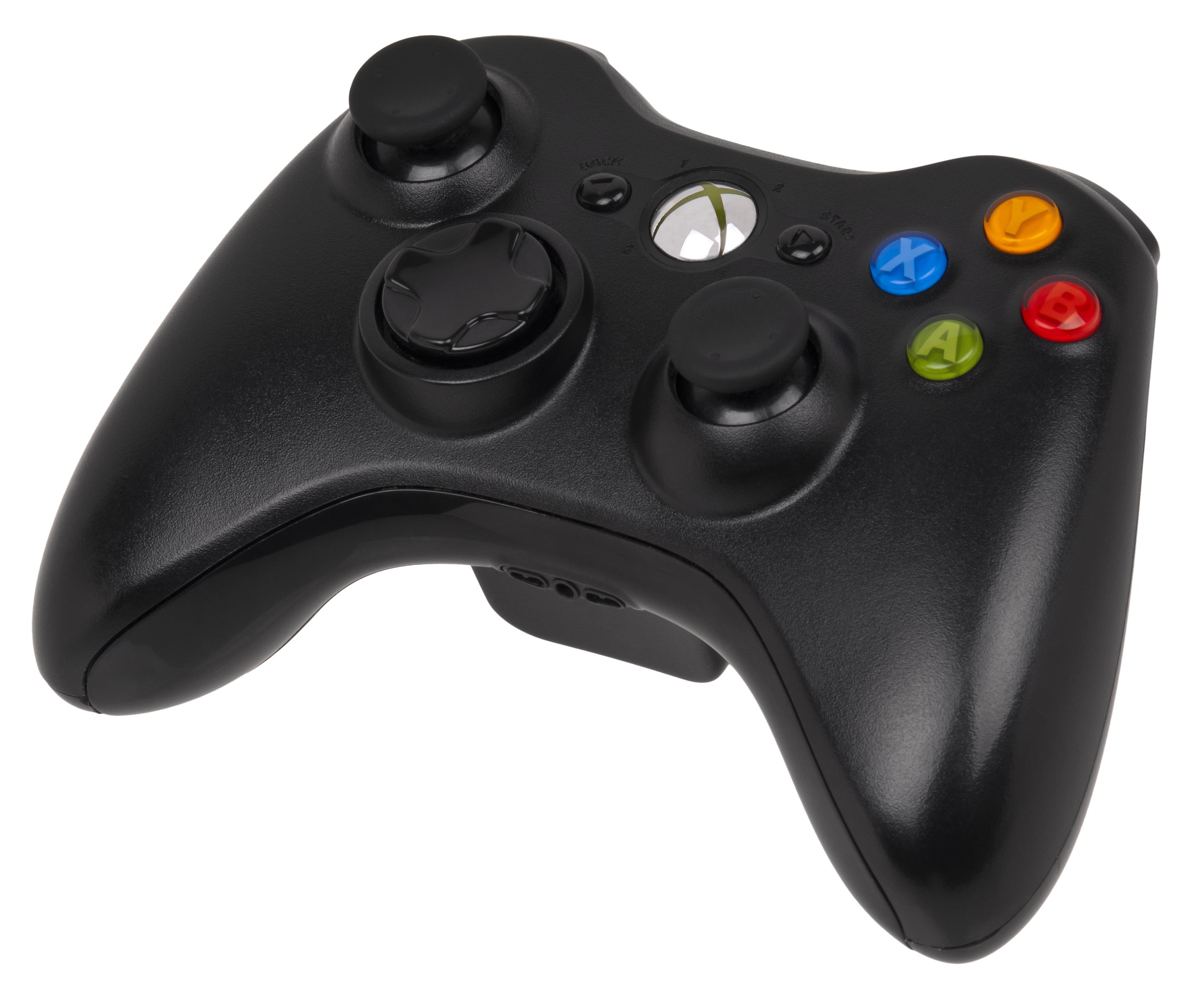 2005년에 출시된 엑스박스 360용 엑스박스 360 컨트롤러는 이전 모델의 후속 제품이다. 표준 엑스박스 360 컨트롤러는 11개의 디지털 버튼, 2개의 아날로그 트리거, 2개의 아날로그 스틱, 그리고 디지털 방향키를 갖추고 있다. 컨트롤러의 오른쪽에는 녹색 "A" 버튼, 빨간색 "B" 버튼, 파란색 "X" 버튼, 노란색 "Y" 버튼의 네 개의 디지털 액션 버튼이 있다. 오른쪽 아래에는 오른쪽 아날로그 스틱이, 왼쪽 아래에는 디지털 방향키가, 왼쪽에는 왼쪽 아날로그 스틱이 있다. 두 아날로그 스틱 모두 아래의 디지털 버튼을 활성화하기 위해 "클릭"할 수 있다. 컨트롤러 중앙에는 디지털 "시작", "뒤로", "가이드" 버튼이 있다. "가이드" 버튼에는 엑스박스 로고가 표시되어 있으며, 콘솔/컨트롤러를 켜고 가이드 메뉴에 액세스하는 데 사용된다. 또한 컨트롤러 번호를 나타내는 "빛의 고리"로 둘러싸여 있으며, 연결 시 깜박이고 알림을 제공한다. 왼쪽과 오른쪽 "어깨"에는 각각 디지털 숄더 버튼 또는 "범퍼"와 아날로그 트리거가 있다.