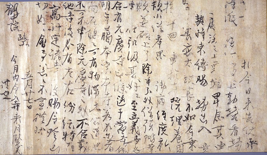 : 도쿄 국립박물관이 소장하고 있는 국보 〈엔친 관계 문서〉에 포함되어 있다. 고금화가집의 시인으로 헤이안 6가선(歌仙)의 한 사람으로 꼽히는 헨조(遍照) 승정에게 보낸 답신으로, 연도는 알 수 없으나 5월 27일이라는 월일만이 알려져 있다. 엔친이 말년에 보낸 편지로 추정된다. 고풍스러우며 날렵한 서체이다.