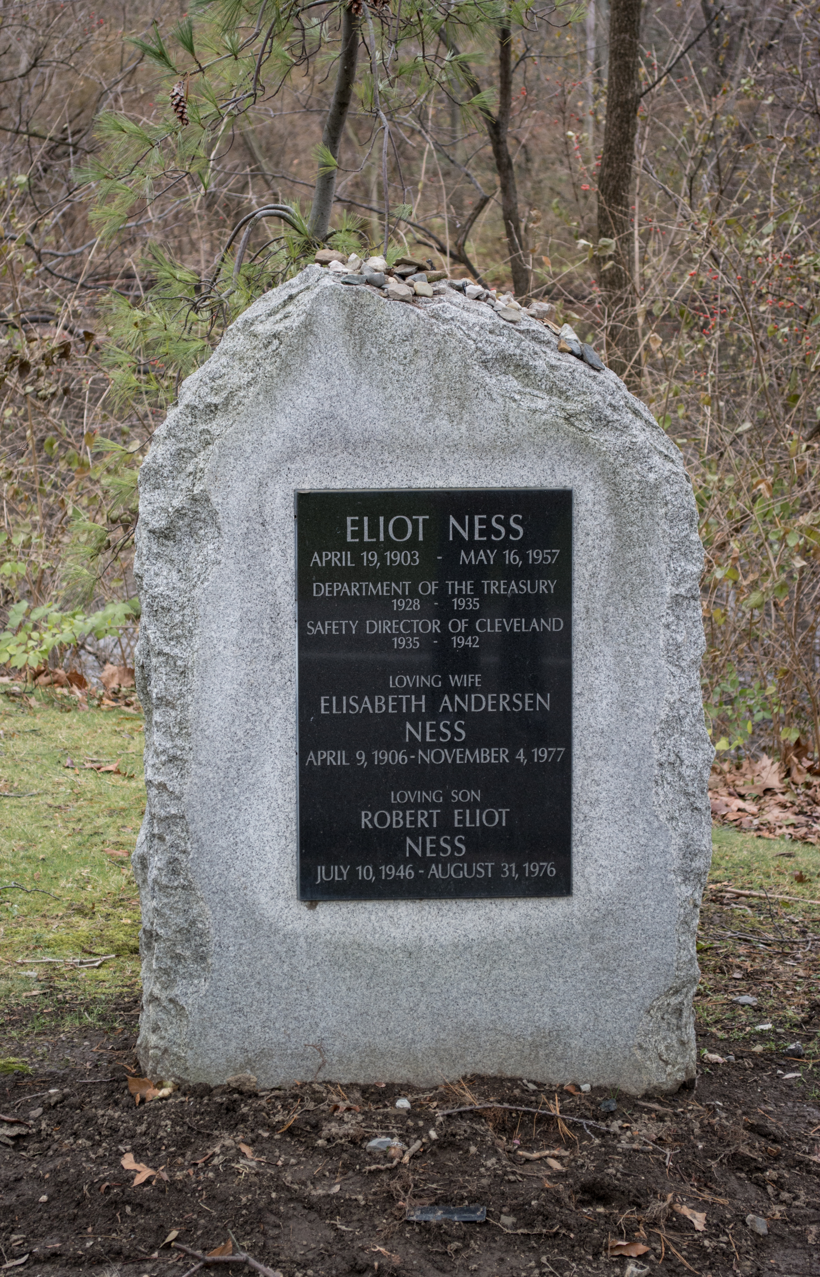 엘리엇 네스는 오스카 프레이리와 공동 집필한 책 『언터처블』의 최종 교정을 승인한 직후인 1957년 5월 16일, 펜실베이니아주 쿠더스포트 자택에서 심장마비로 쓰러져 54세의 나이로 사망했다.[14] 그의 시신은 화장되었고, 유골은 클리블랜드의 레이크뷰 공동묘지 내 작은 연못 중 한 곳에 뿌려졌다.[18] 이후 한 숭배자가 연못 근처에 그를 기리는 가묘를 세웠다.[19]