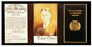 엘리엇 네스는 미국 재무부 금주국 요원으로 법 집행 경력을 시작했다. 허버트 후버 대통령의 지시에 따라 시카고의 악명 높은 갱스터 알 카포네의 볼스테드 법 위반 혐의를 수사하는 특별팀을 이끌게 되었다. 부패가 만연했던 시카고에서 네스와 그의 팀은 뇌물이나 협박에 굴하지 않아 "언터처블"(Untouchableseng)이라는 별명을 얻었다.[37] 네스 팀의 활동은 카포네 조직에 타격을 주었으나, 카포네는 주로 프랭크 J. 윌슨 등이 주도한 소득세 탈세 혐의로 유죄 판결을 받았다.[38][39][40] 네스의 역할에 대해서는 그의 자서전을 통해 대중에게 알려진 것과 달리 과장되었다는 평가도 존재한다.[37] 카포네 체포 후 FBI 입성을 희망했으나, 당시 국장이었던 J. 에드거 후버와의 관계 때문에 좌절되었다고 알려져 있다.