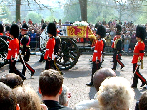 장례일인 4월 9일, 캐나다와 오스트레일리아에서 추모 행사가 열렸다.[145][146] 런던에서는 100만 명 이상이 운구 행렬을 지켜봤다.[147] 그녀는 남편과 딸 마거릿 옆에 안장되었으며, 요청에 따라 무명 용사의 묘에 화환이 놓였다.[148]