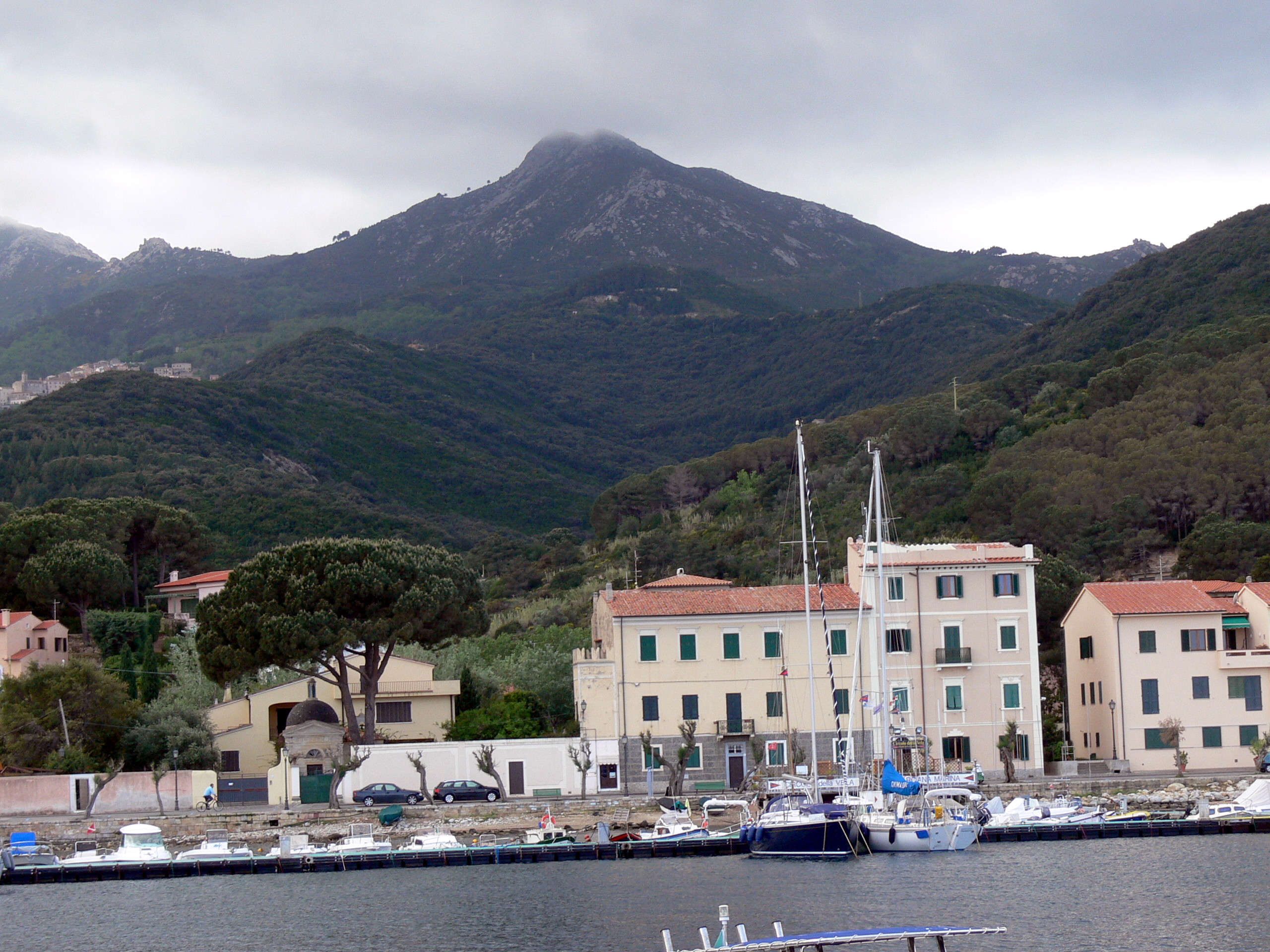 섬 주민은 3만 명이며, 최대 도시는 북쪽 해안의 포르토페라라이오이다. 여름에는 해수욕객이 많이 찾아온다.