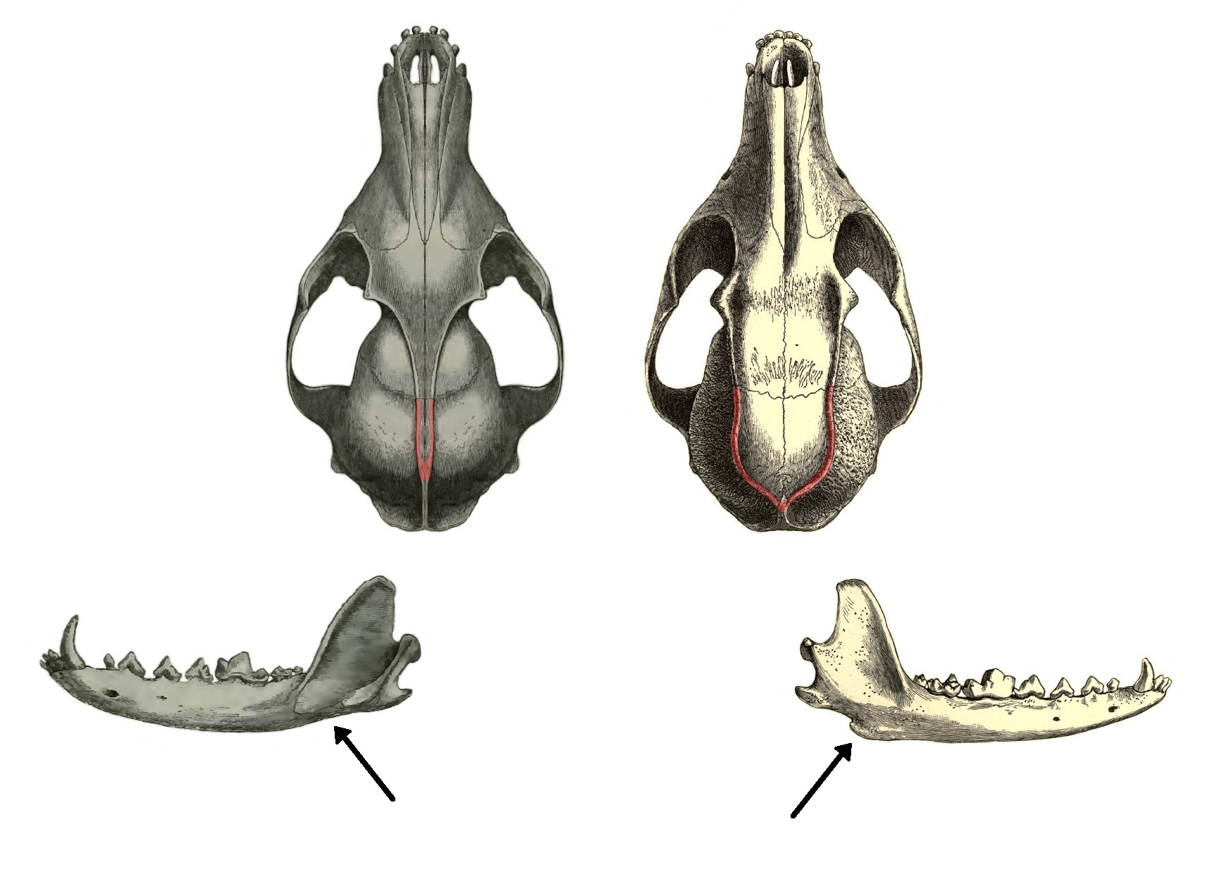 개과 동물의 계통 발생 관계는 DNA 분석 결과에 따르면 여러 계통 분류군으로 나뉜다.[6]