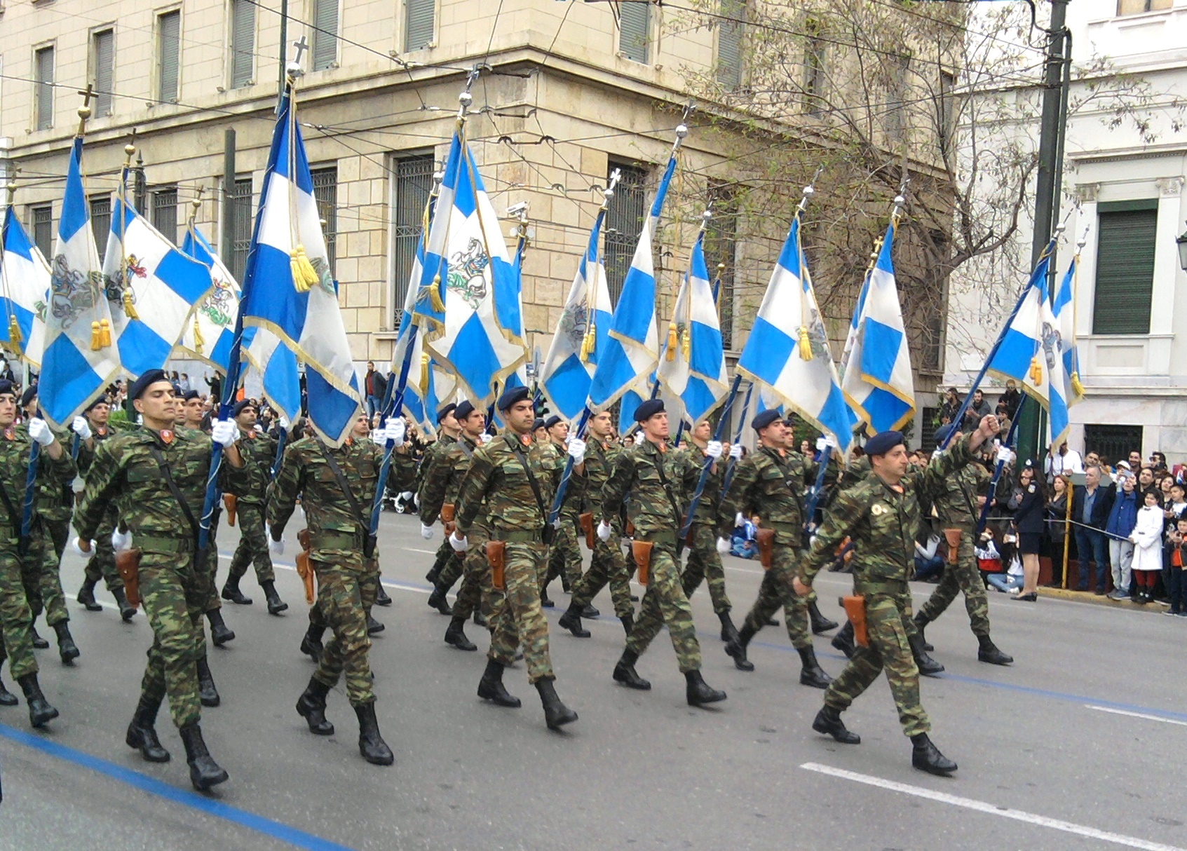 - '''그리스'''는 영국, 프랑스, 덴마크, 독일 전통을 혼합한 군사 퍼레이드를 개최한다. 헬라스 군은 독립 기념일과 오히 데이 등에 퍼레이드를 개최한다.