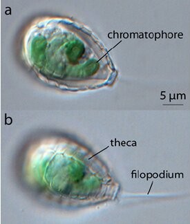 - 누클레오모프: 클로라라크니온 조류[196]나 크립토조류 등에서 발견되는 퇴화한 핵 유사 구조물이다. 엽록체 막 사이에 존재하며, 2차 공생 과정에서 흡수된 진핵 조류의 핵 흔적으로 여겨진다.[197] 클로라라크니온 조류는 녹조류를 받아들인 것으로 밝혀졌다.[196]
