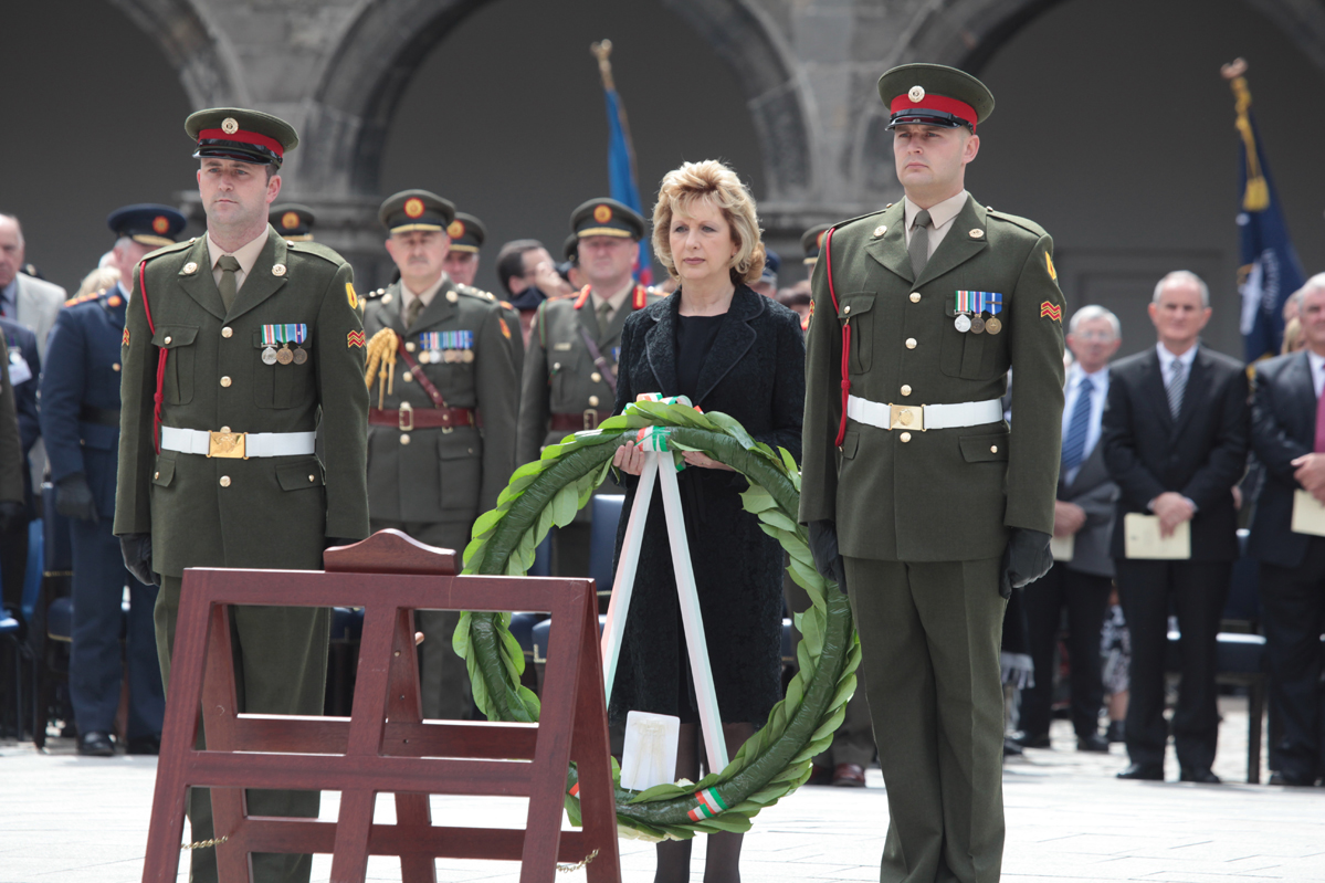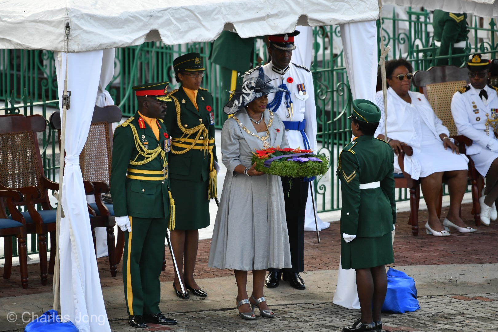 그 후 각 단체는 기념비 기단에 화환을 놓는다. 한 개의 화환은 캐나다가 참여한 분쟁에서 사망한 모든 아이들을 대신하여 추모 십자 훈장을 최근에 받은 은십자 어머니가 놓는다. 총독과 왕실 일행은 캐나다 왕실 국가인 "신이여, 국왕을 구하소서"의 연주를 받기 위해 단상으로 돌아오고, 프랑스어와 영어로 불린 후, 소집된 군인들과 참전 용사들이 부왕과 왕실 손님 앞에서 사열을 수행하며 공식 기념식은 종료된다.[40]