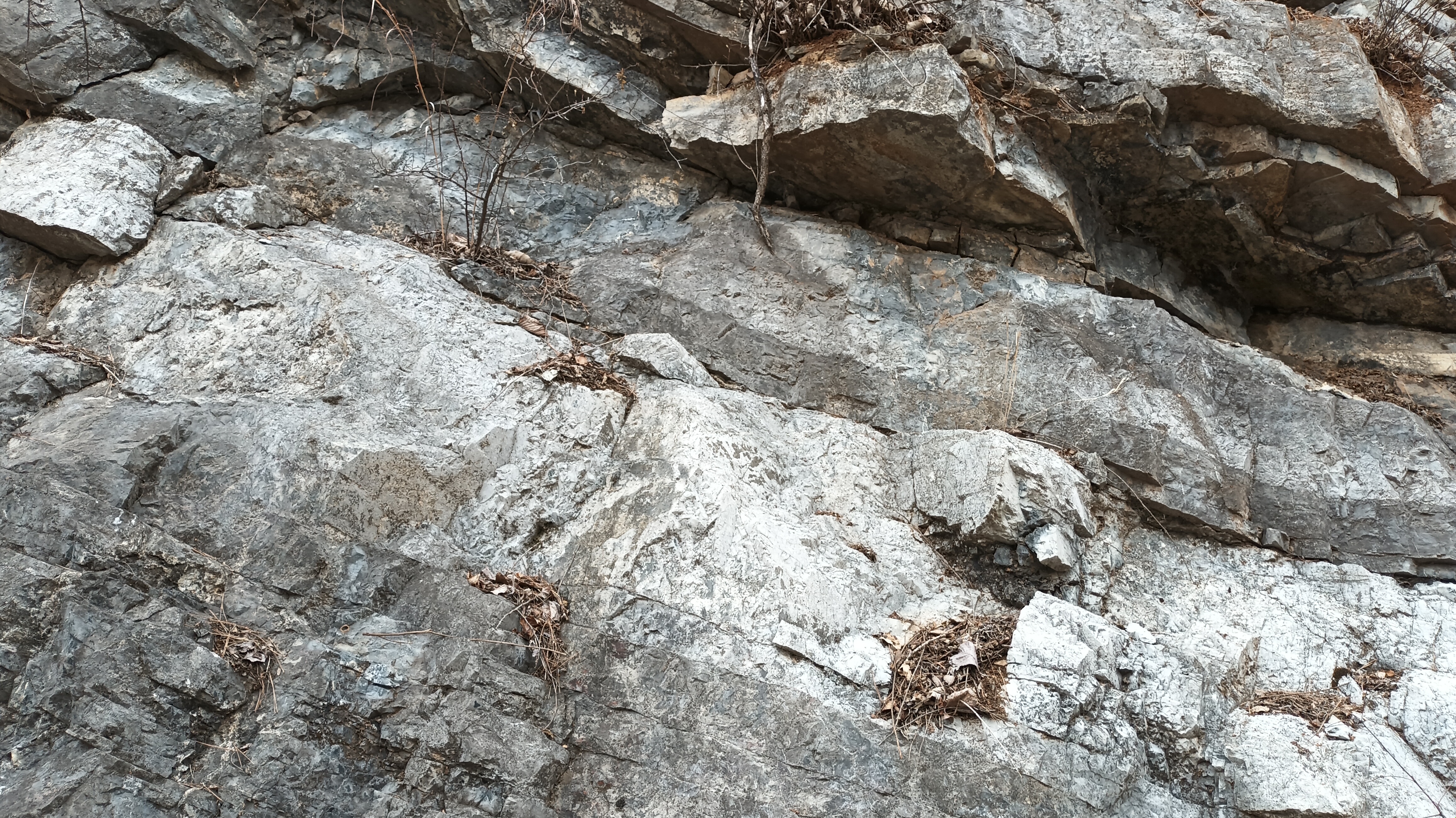 영월군 북면 연덕리의 원동재로 도로변에는 아래 사진과 같이 마차리층의 노두가 대규모로 드러나 있으며 이곳의 마차리층은 거의 수직으로 기울어 있다.