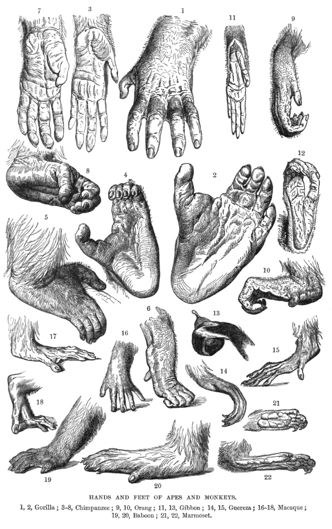 원숭이하목은 약 4000만 년 전에 등장했으며,[284] 신세계원숭이를 포함하는 광비원소목과 구세계원숭이와 사람 등의 유인원을 포함하는 협비원소목으로 나뉜다.[264]