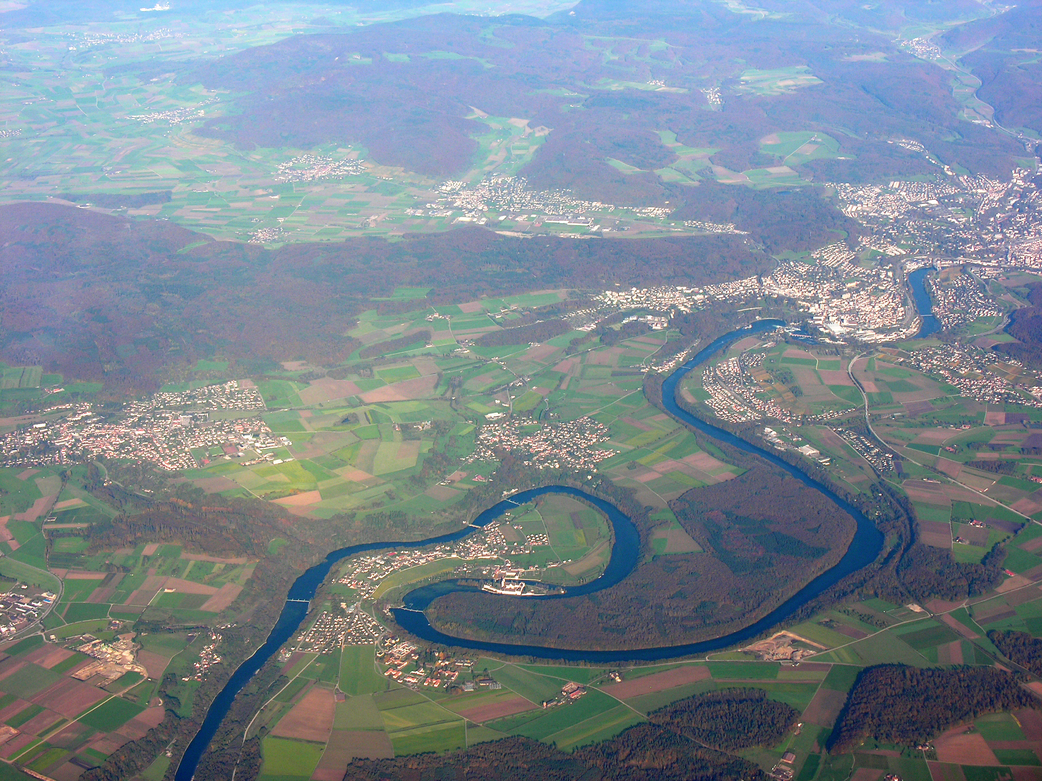 Rhine과 Jestetten이 왼쪽에 있는 중앙의 항공 뷰