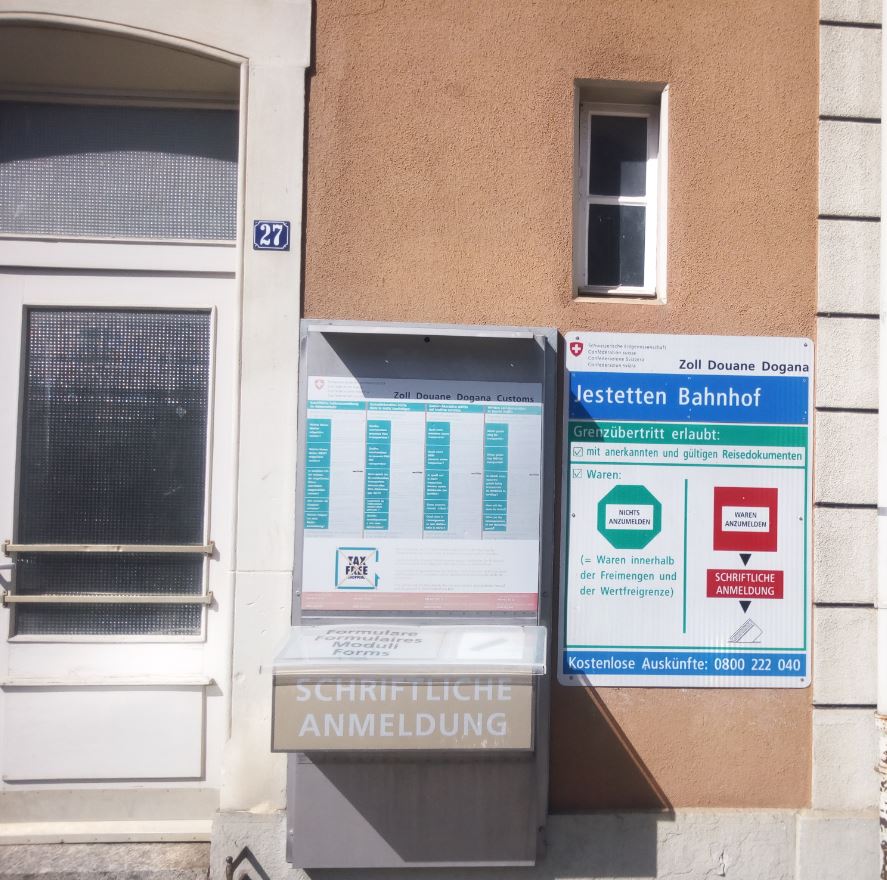 독일 노선의 역에 정차하지 않고 예슈테텐을 통과하는 열차는, 열차와 승객이 기술적으로 스위스 관세 구역을 벗어나 유럽 연합 관세 구역에 진입했다가 다시 스위스 관세 구역에 진입함에도 불구하고, 양국의 세관 절차나 제한의 적용을 받지 않는다. 이와 관련된 협정은 두 국가 간에 체결되어 1936년에 법률로 제정되었다.[4] 1840년부터 1935년까지, 예슈테텐은 알텐부르크, 로트슈테텐, 그리고 당시 데티히호펜과 함께 관세 제외 구역을 형성했으며, 독일 관세 구역에 속하지 않았다.