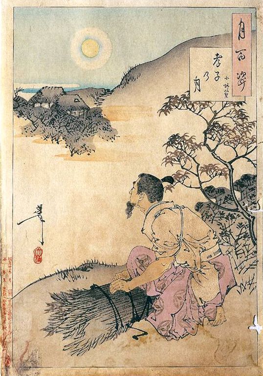 『효자의 달』(월오카 요시토시 『달의 백 가지 모습』) 부모를 위해 땔나무를 모으는 오노노 타카무라