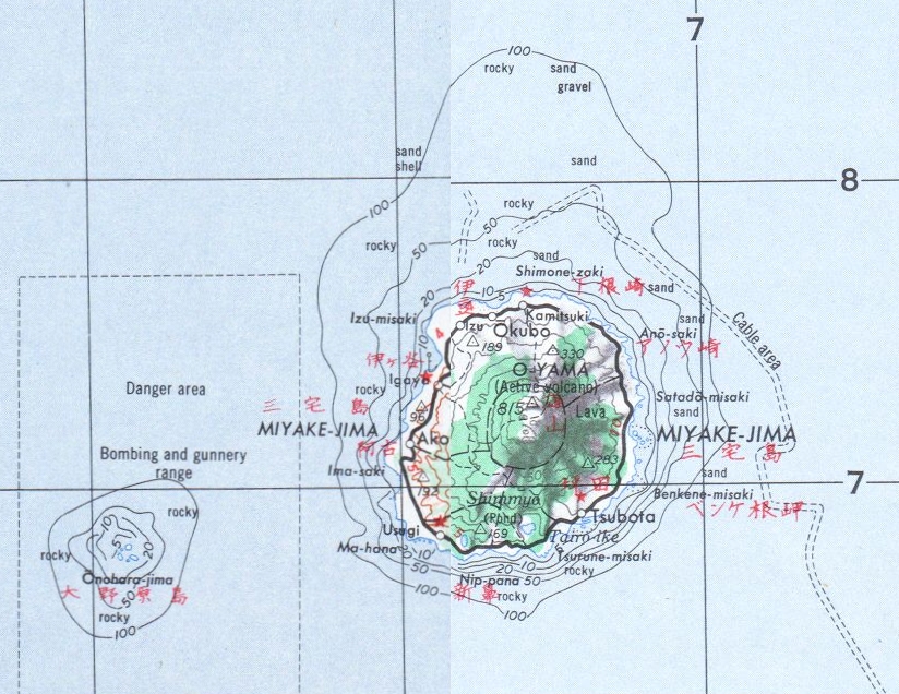 미야케섬은 도쿄에서 남쪽으로 약 180km 떨어진 이즈 제도에 위치한 화산섬으로, 활화산인 오야마 산의 잦은 화산 활동으로 주민 대피 등의 영향을 받았으나 현재는 생태 관광을 중심으로 다양한 관광 자원을 보유하고 있으며 도카이 기센의 여객선과 항공편으로 접근 가능하다. - 이즈 제도 - 이즈-오가사와라 해구