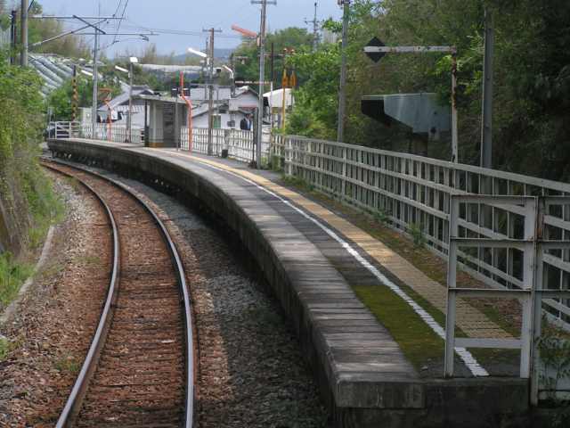 역 남쪽은 주택지이지만 논밭도 일부 있으며, 서쪽에는 중학교가 위치한다. 역 북쪽은 게시산에 접해 있다.