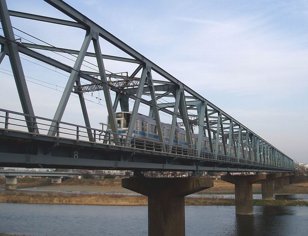 아츠기 - 혼아쓰기 간 사가미가와 교량을 건너는 1000형(2007년 3월 2일)