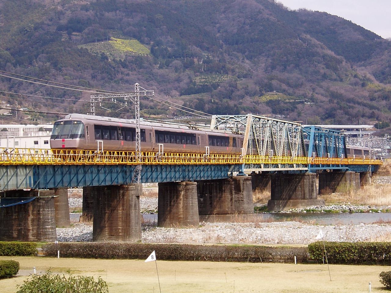 신마쓰다역 - 카이세이역 간 사카와가와 교량을 건너는 30000형 「EXE」(2007년 3월 9일)