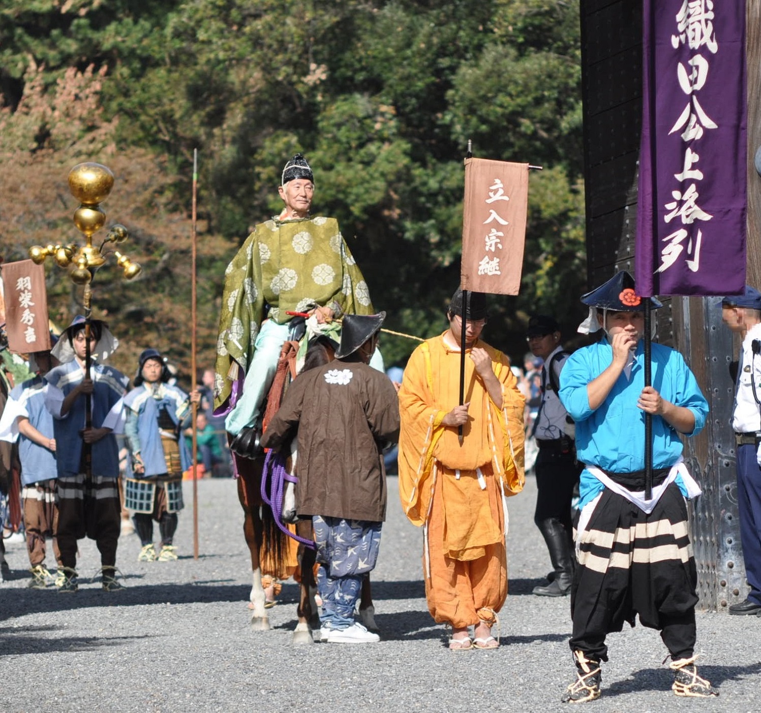1559년 오와리 국의 지배권을 확립한 후, 100명의 군세를 이끌고 교토로 상경해 무로마치 막부 13대 장군 아시카가 요시테루를 알현했다.