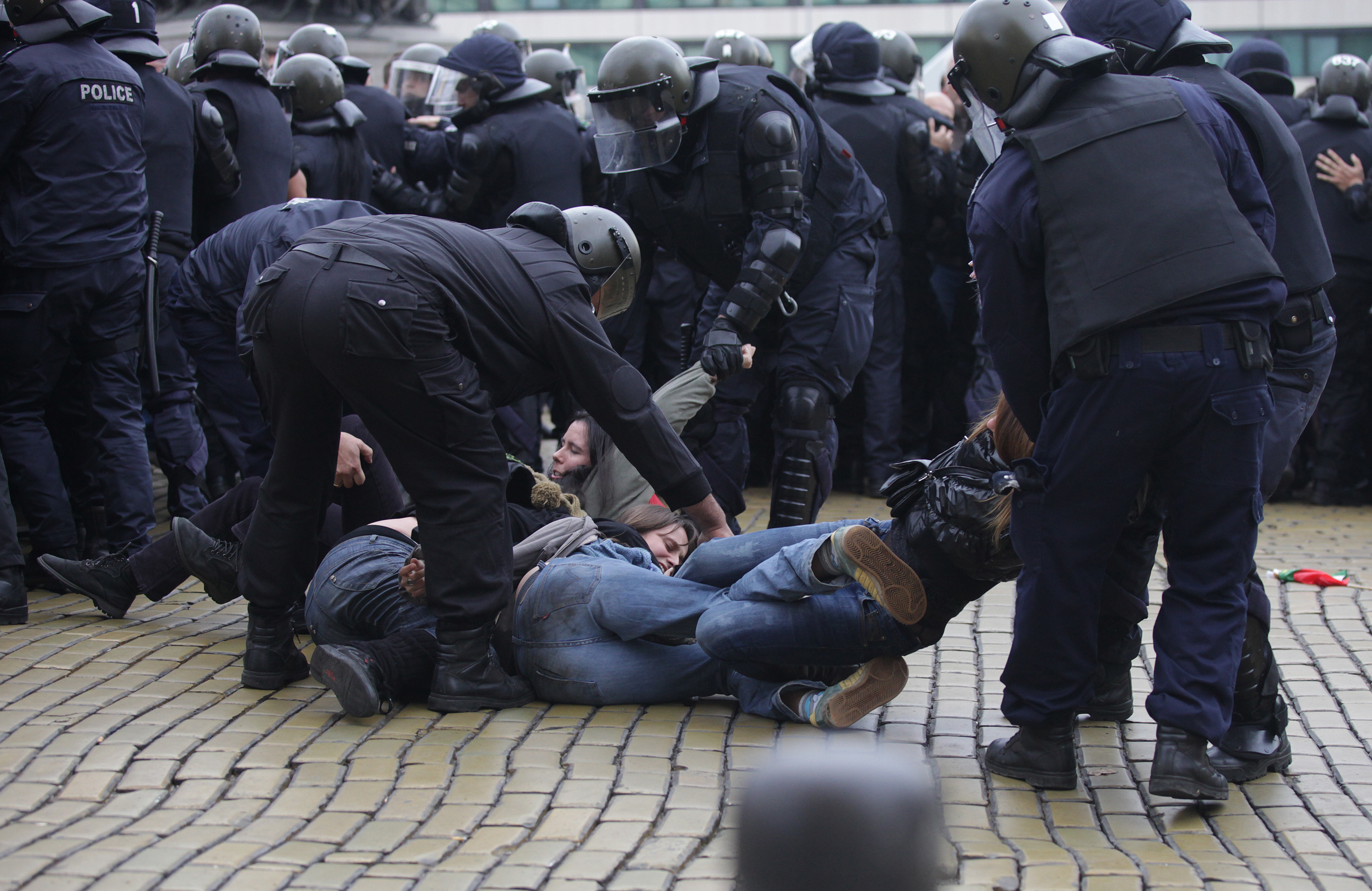 1989년 11월 10일, 토도르 지프코프 공산주의 국가 원수의 사임 24주년을 맞아 정의의 행진이 조직되었고, 이는 좌익 오레샤르스키 내각에 반대하는 시위에 새로운 동력을 부여했다.[144]2013년 11월 12일, 반정부 시위 152일째를 맞은 시위대는 두 번째로 의회 포위를 시도했다.[145] 시위 지지 소식통은 점거 학생들과 함께 시위에 참여하는 시위를 진압하기 위해 약 7,000명의 경찰 공무원이 배치되었다고 주장했다. 이날 경찰은 도발자 침투 징후와 의회에 대한 방화 위협 가능성에 대한 신호를 받았다.[45] 또한 시위대가 국회 광장 근처에서 한 국회의원 차에 뛰어든 후 시위대와 경찰 간의 긴장이 고조되었다.[146] 시위의 가장 상징적인 이미지 중 하나는 11월 12일에 촬영되었는데, 완전한 진압 장비를 착용한 동정심 많은 경찰관을 포옹하는 눈물을 흘리는 십 대 소녀의 사진이었다.[147]