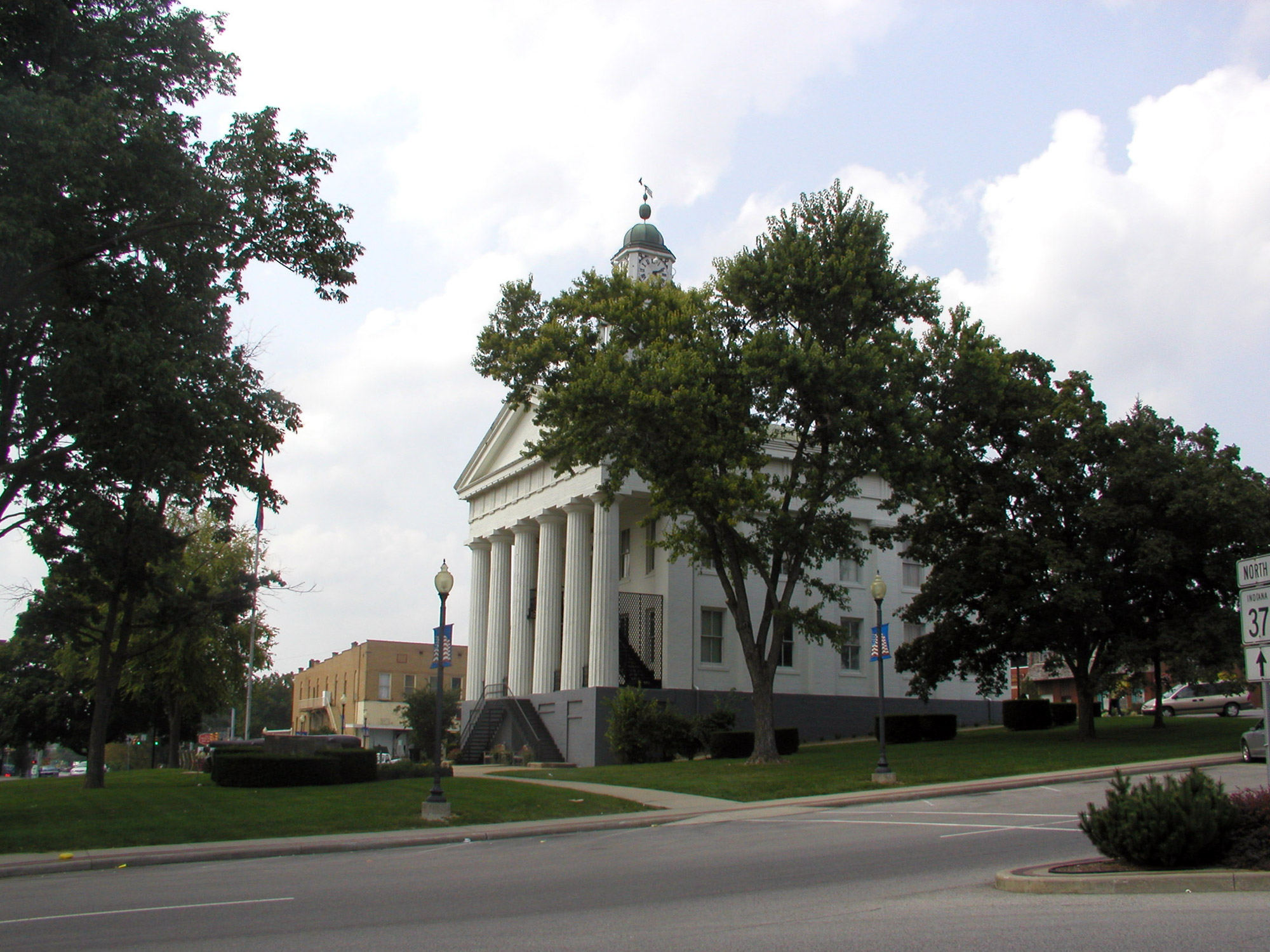 처음에는 25USD를 들여 임시 통나무집 군청사를 지었다. 1818년에는 3950USD를 투입하여 석조로 된 좀 더 영구적인 건물을 건설했다.[40] 이후 1847년에 새로운 군청사 건립 계획이 세워졌고, 1.4만달러의 예산으로 1850년에 완공되었다. 이 건물은 그리스 부흥 양식으로 지어진 2층 건물로, 도리아 양식 기둥이 받치고 있는 포르티코, 장식적인 주철 계단, 시계탑을 갖추고 있다. 이 군청사는 건설 이후 계속 사용되어 인디애나주에서 두 번째로 오래된 군청사 건물이다 (가장 오래된 것은 오하이오군 군청사). 1970년 화재로 시계탑이 손상되기도 했다.[41]