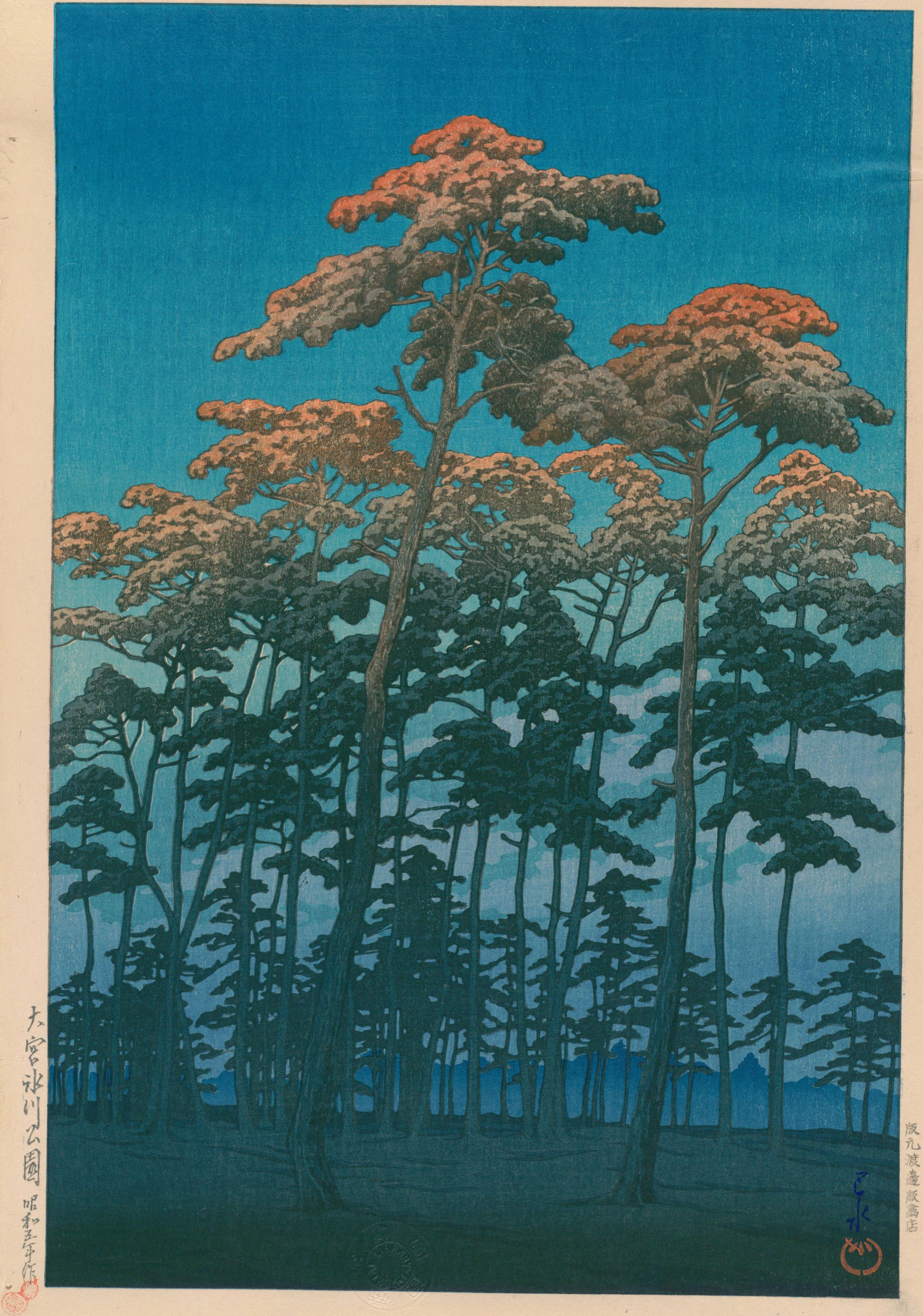 메이지·다이쇼 시대에는 철도를 이용하면 도쿄에서 약 1시간 만에 방문할 수 있었기 때문에, 사이타마현민뿐만 아니라 도쿄 근교 사람들의 좋은 유람지였다. 많은 문학자가 방문, 체류했고, 그 중에는 「빙카와 공원」(혹은 「오미야 공원」)이라는 이름을 자신의 작품에 등장시킨 사람도 있었다.[4] 모리 오가이는 자신의 소설인 「청년」에서 소풍이라는 명목으로 주인공인 청년이 친구와 함께 빙카와 공원을 방문하는 모습을 그리고 있다.[5] 마사오카 시키는 1891년(메이지 24년) 가을, 도쿄제국대학 국문과 학생이었던 시절 시험 공부를 위해 빙카와 공원 안의 가정식 여관·만송루(현재의 오미야 공원 야구장 부근에 위치)에 10일 정도 체류했다.[6][7][8][9][10] 소나무 숲에 둘러싸인 조용하고 시원한 빙카와 공원의 환경을 마음에 들어 한 시키는 시코쿠의 마쓰야마에 있던 절친한 친구·나쓰메 소세키를 불러 함께 1, 2박 했다.[6][8][9][7][10] 체류 중에는 소나무 숲을 산책하거나 하이쿠 제작을 했다고 한다.[8][7]