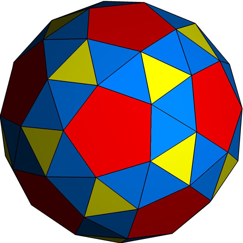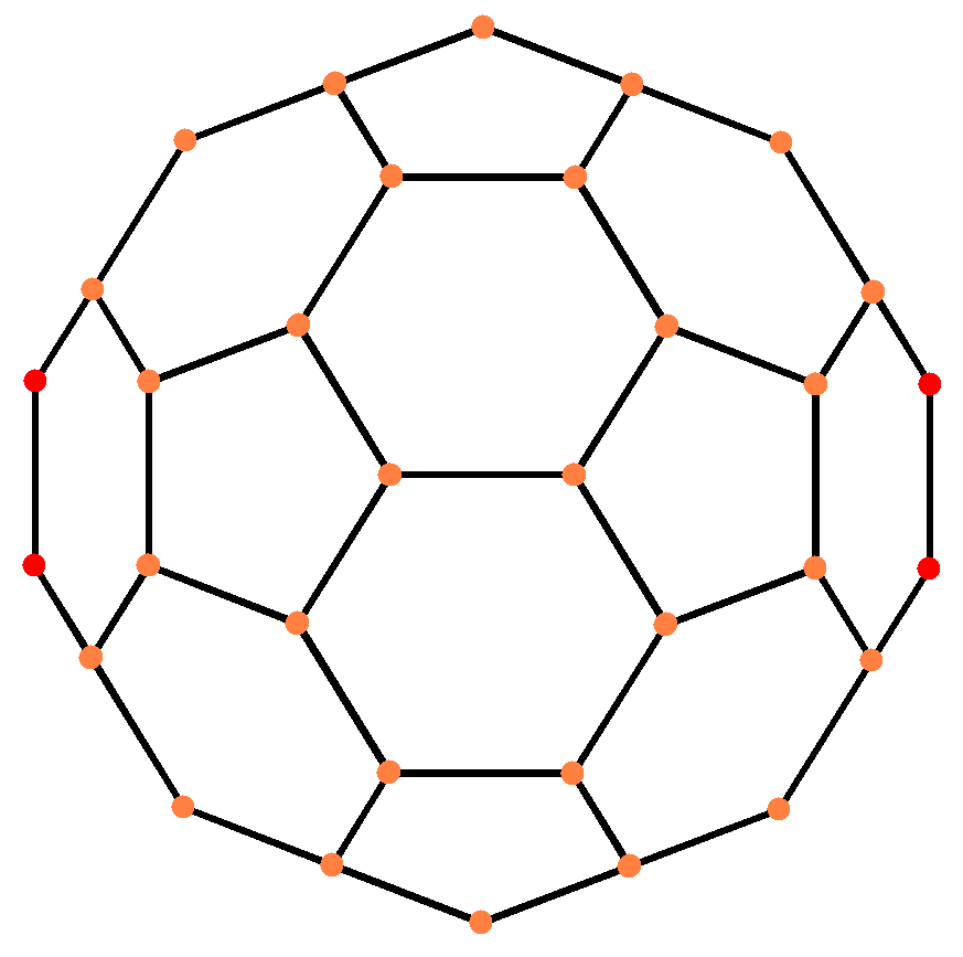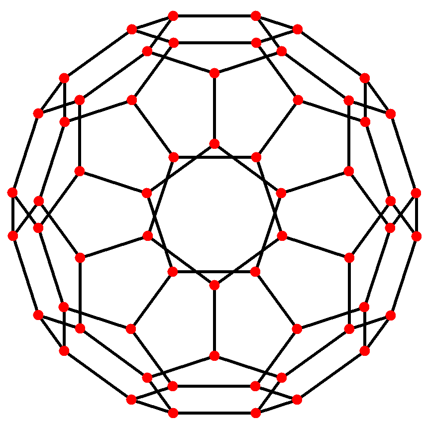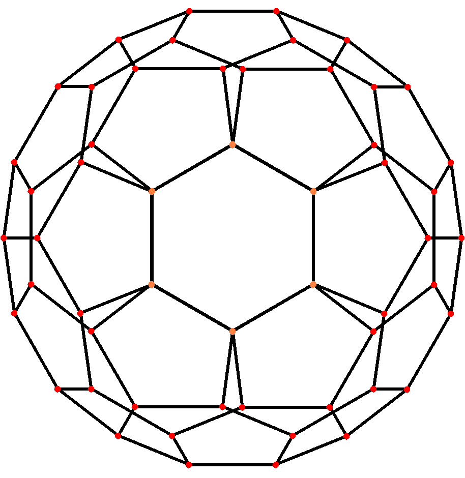 '''오방십이면체'''는 풀러렌의 모형으로, 각 (구형) 표면 조각은 탄소 원자를 나타낸다. 모두 평면으로 대체하면 오방십이면체가 생성된다. 절단된 이십면체는 풀러렌의 모형이며, 각 꼭짓점은 탄소 원자를 나타낸다.