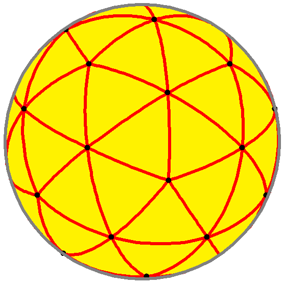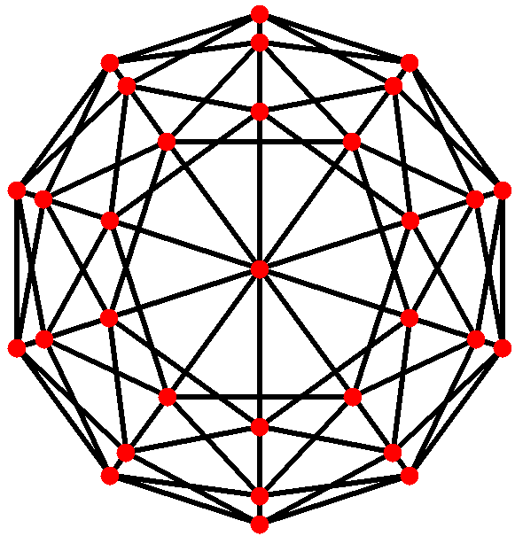 오방십이면체는 세 개의 대칭 위치를 가지며, 두 개는 꼭짓점에, 하나는 중간 모서리에 위치한다.투영 대칭 | [2] | [6] | [10] |