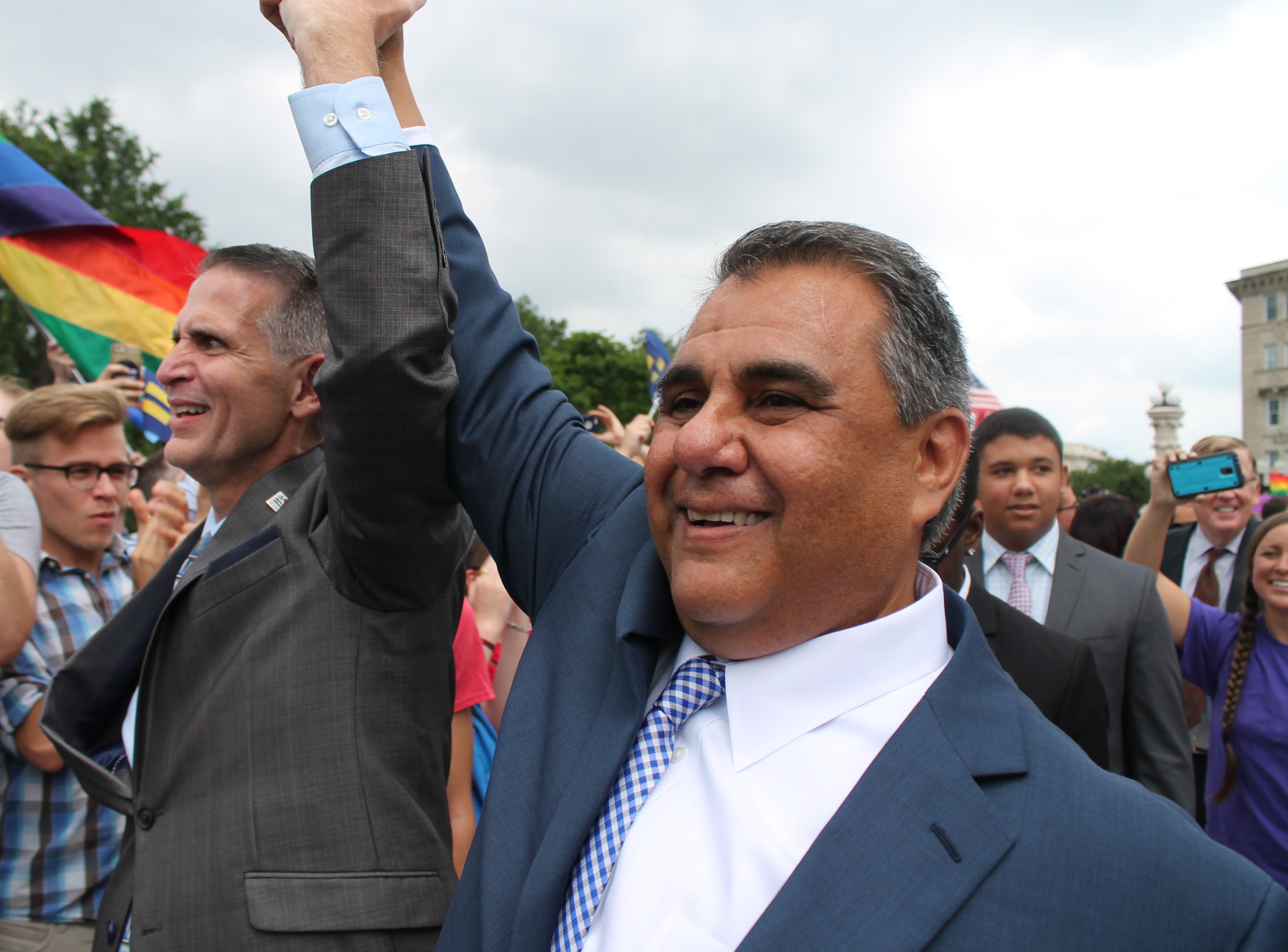 2015년 1월 16일, 미국 연방 대법원은 ''DeBoer v. Snyder''(미시간), ''오버게펠 대 호지스 사건''(오하이오), ''Bourke v. Beshear''(켄터키), ''Tanco v. Haslam''(테네시) 등 동성 결혼을 금지하는 주법에 이의를 제기한 네 건의 동성 결혼 사건을 병합하여 심리하기로 합의했다.[93][94][95] 대법원은 수정 헌법 제14조가 주(state)가 동성 간의 결혼을 허가하고, 다른 주에서 합법적으로 허가 및 수행된 동성 간의 결혼을 인정하도록 요구하는지에 대한 브리핑과 구두 변론을 명령했다.[93][94][95]