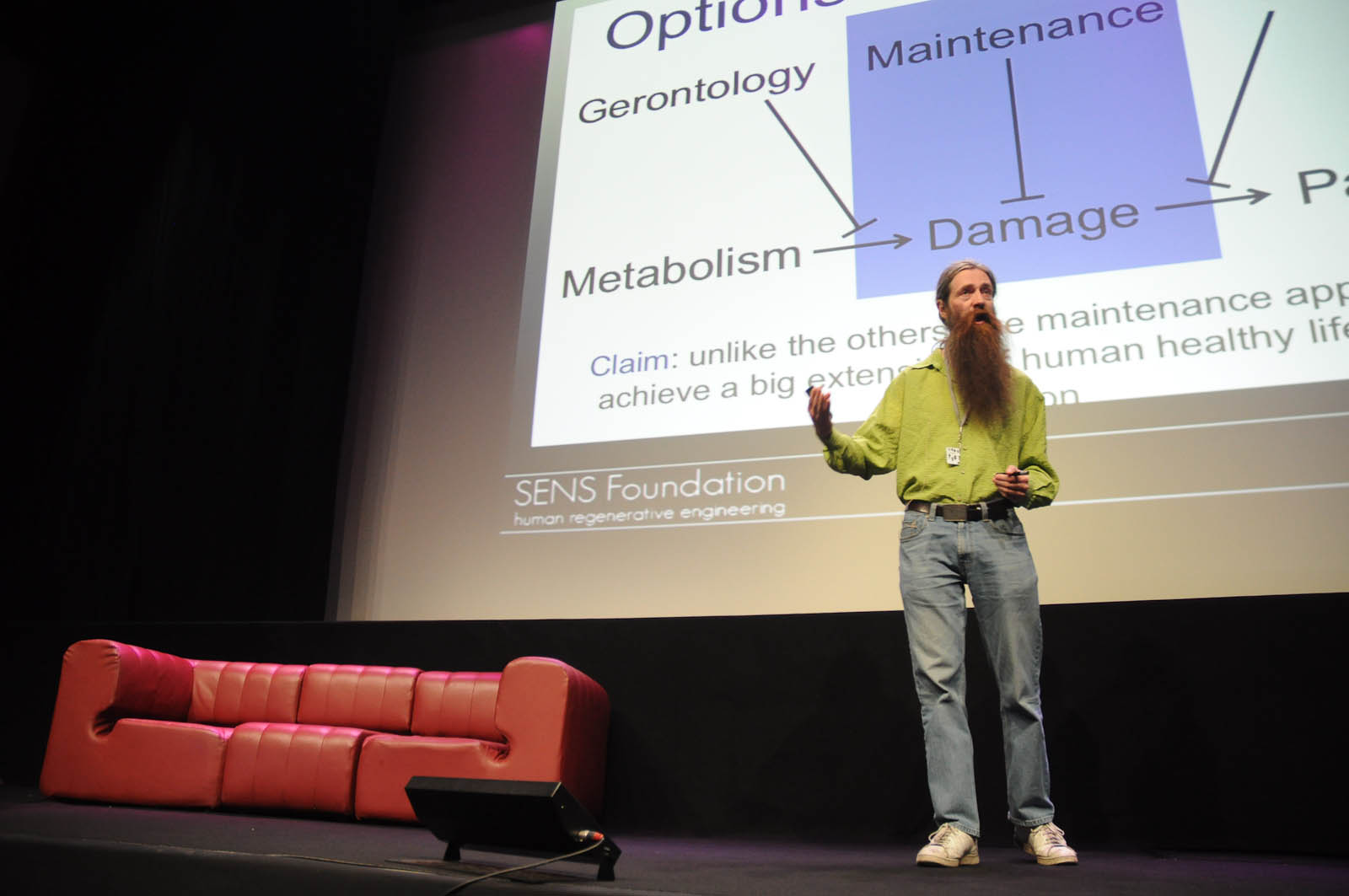 오브리 드 그레이는 엔지니어링 무시할 수 있는 노쇠화 전략(SENS) 개발 및 연구에 힘썼다.[20] 2009년 3월, 그는 SENS 연구 재단을 공동 설립하고 2021년까지 최고 과학 책임자로 재직했다.[21] 이 재단은 "노화로 인한 장애 및 질병에 대한 재생 의학 솔루션 개발, 홍보 및 널리 보급하기 위해 노력하고 있으며"[21], SENS에 중점을 두고 있다.