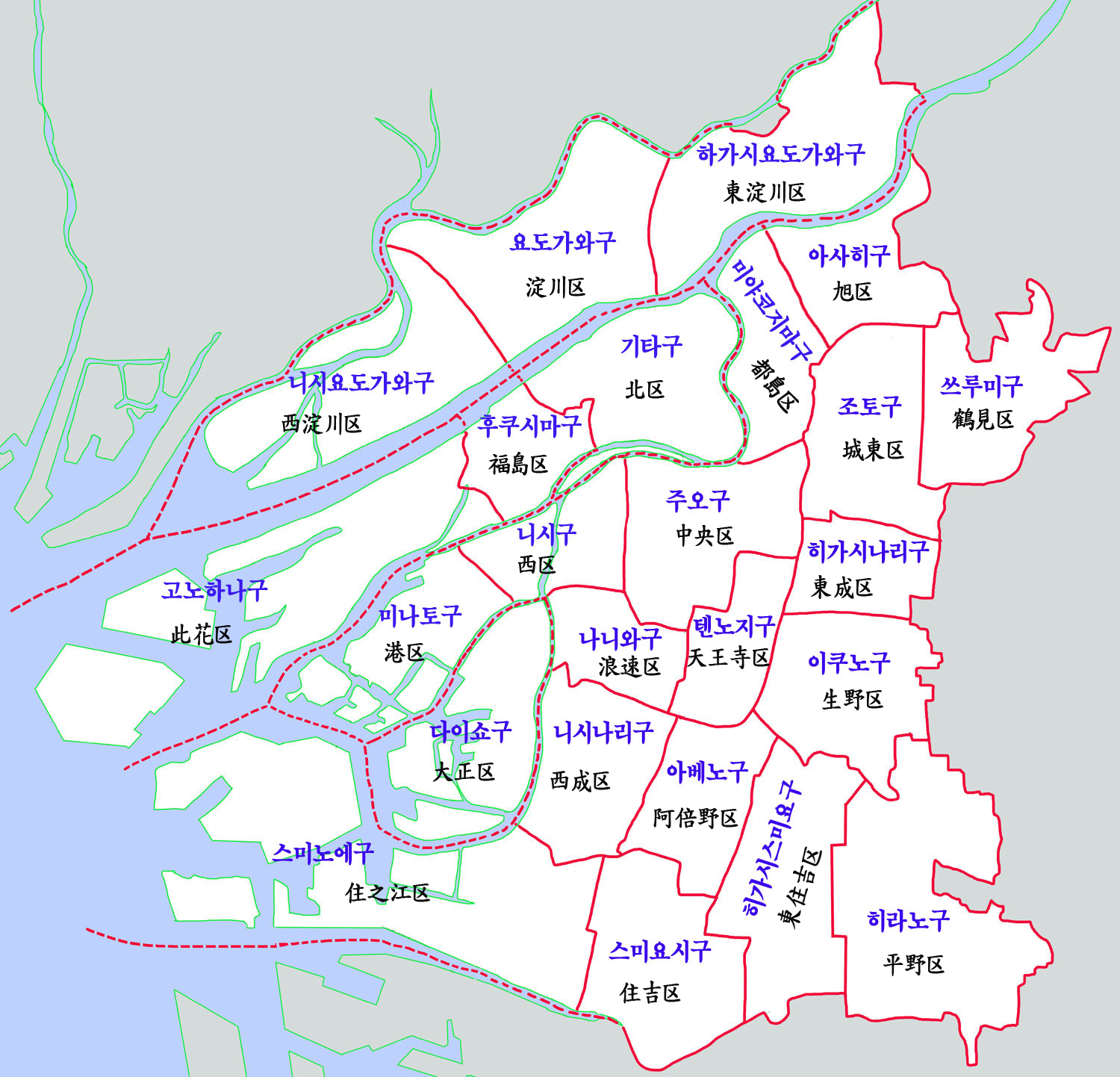 21 | 타이쇼구 (Taishō-ku) | 大正区|다이쇼 구일본어 | 62,872 | 9.43km2 | 6,667 | |