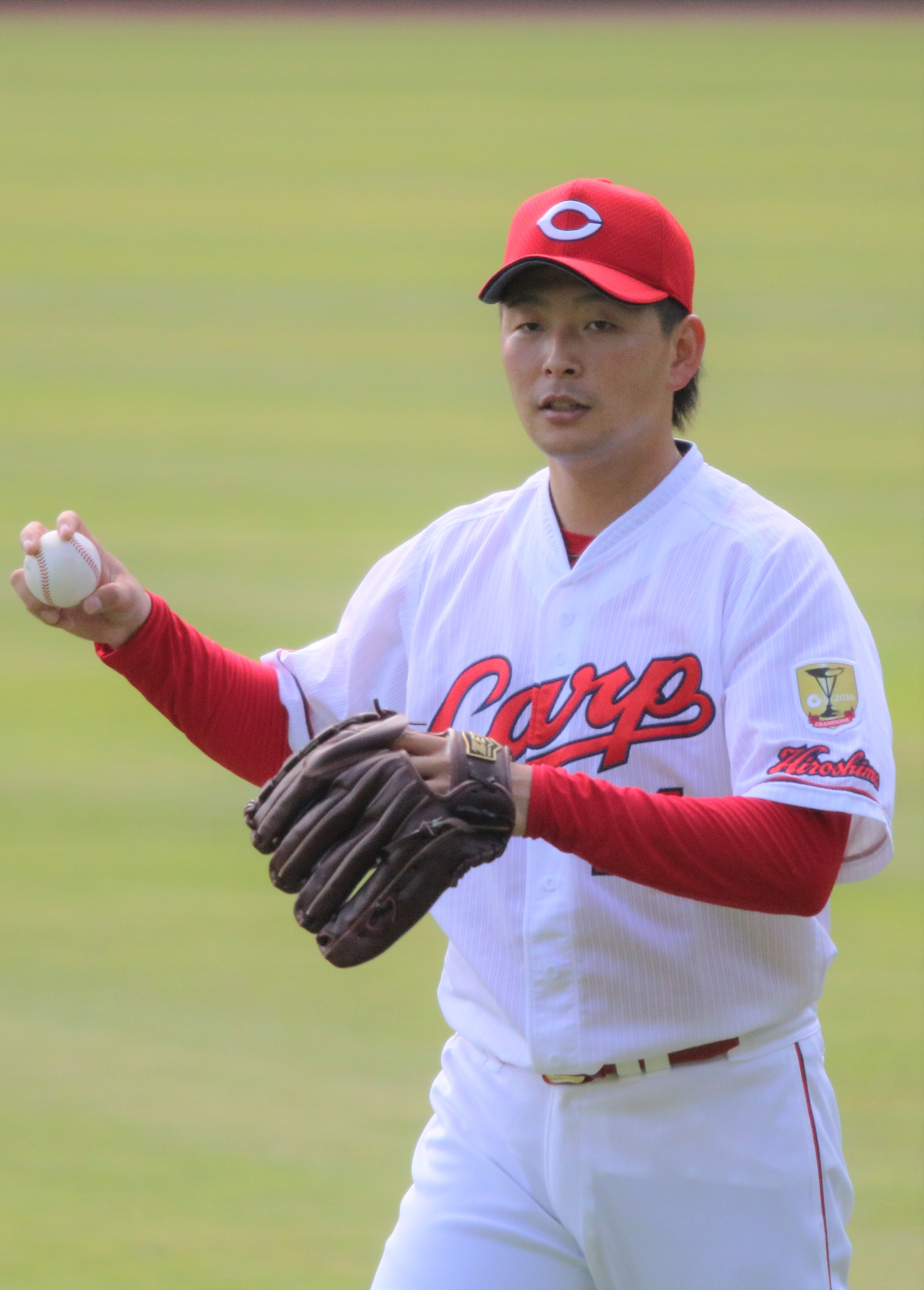 '''''' 3월 29일 개막전 요미우리 자이언츠전(마쓰다 스타디움)에서 개인 첫 개막전 선발 투수를 맡아 8이닝 무실점 호투로 시즌 첫 승을 거두었다. 전년까지 동료였던 마루 요시히로를 4타석 연속 삼진으로 돌려세웠다.[69] 4월 25일 주니치 드래곤즈전(마쓰다 스타디움)에서 시즌 첫 완투·첫 완봉을 기록했다.[70] 올스타전에는 팬 투표 1위로 선정되었다.[71] 11승(9패)으로 두 자릿수 승리를 거두었지만, 8월 29일 요미우리전(도쿄 돔)에서 10실점을 기록하는 등 아쉬운 시즌이었다. 12월 11일, 전년 대비 3000만 엔 증가한 추정 연봉 1억 7500만 엔으로 재계약하며 히로시마 일본인 투수 최고 연봉을 기록했다.[72]