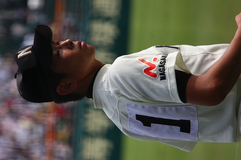 고등학교는 나가사키 니혼 대학 고등학교에 진학했다.[135] 3학년 때 하계 나가사키 대회 준준결승전에서 같은 해 선발 고등학교 야구 대회 우승 학교이기도 한 나가사키 현립 세이호 고등학교와 맞붙어 이마무라 다케루와 투수전을 펼쳐 4피안타 1실점으로 완투, 3대 1로 승리했다. 결승에서도 소세이칸 고등학교를 꺾고 제91회 전국 고등학교 야구 선수권 대회에 출전했다. 1차전에서 기쿠치 유세이가 소속된 이와테현 하나마키히가시 고등학교를 상대로[174] 5회까지 무실점으로 호투했지만 팀은 패했다. 졸업 후 프로 지망 신청서를 제출하지 않고 규슈 공립대학에 진학했다.[136] 아라카키 나기사와 마하라 다카히로를 프로로 배출한 나카자토 기요시 감독의 지도를 받고 싶었기 때문이다.[136]