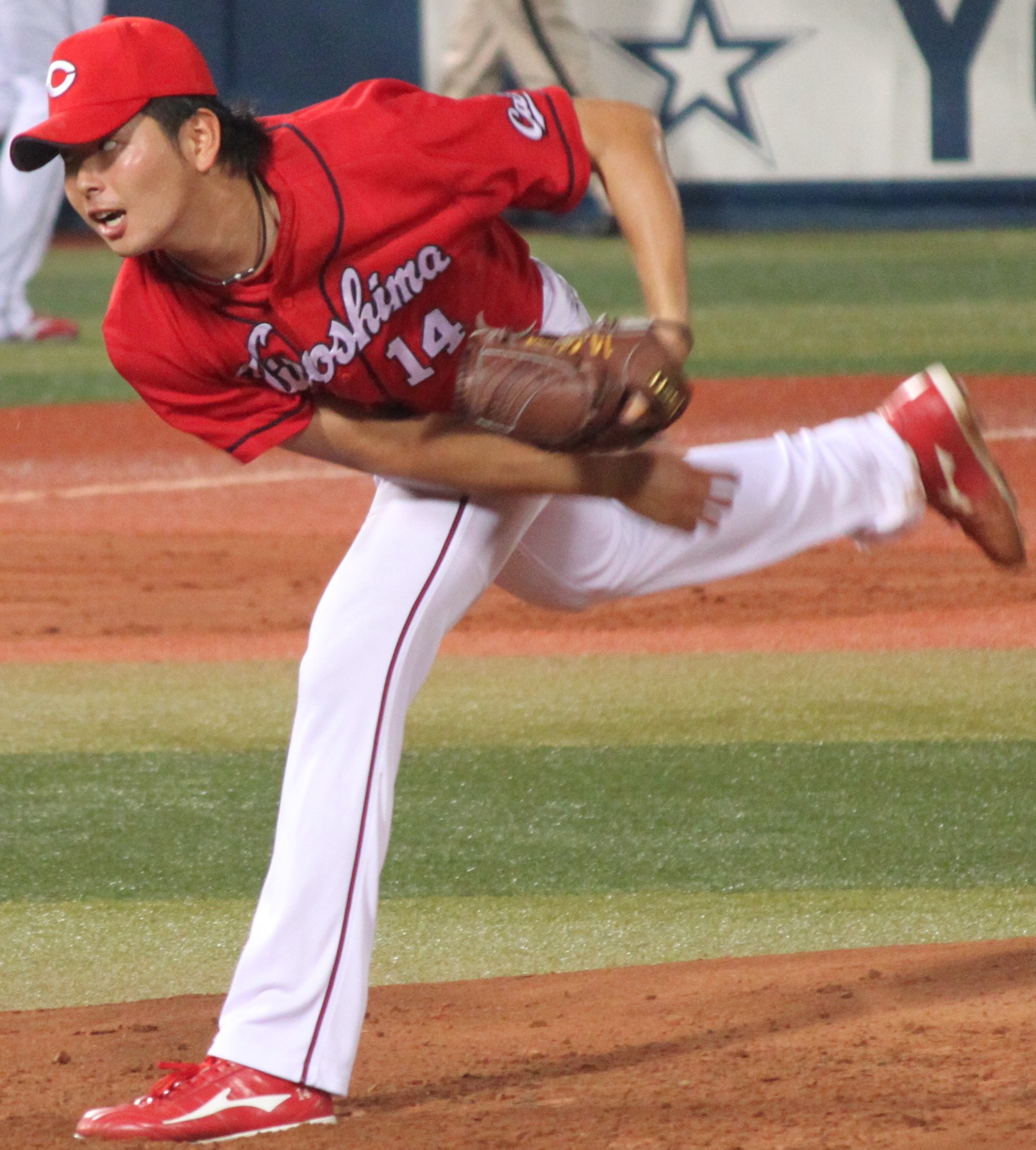 3월 29일 개막전 요미우리 자이언츠전(마쓰다 스타디움)에서 개인 첫 개막전 선발 투수를 맡아 8이닝 무실점 호투로 시즌 첫 승을 거두었다. 전년까지 팀 동료였던 마루 요시히로를 4타석 연속 삼진으로 돌려세웠다.[69] 4월 25일 주니치 드래곤즈전(마쓰다 스타디움)에서 시즌 첫 완투·첫 완봉을 기록했다.[70] 올스타전에는 개인 첫 팬 투표 1위로 선정되었다.[71] 최종적으로 11승(9패)으로 두 자릿수 승리를 거두었지만, 8월 29일 요미우리전(도쿄 돔)에서 10실점을 기록하는 등 중요한 순간에 득점을 허용하는 경우가 많아 아쉬운 시즌이었다. 12월 11일, 전년 대비 3000만 엔 증가한 추정 연봉 1억 7500만 엔으로 재계약을 체결하여 히로시마 일본인 투수 최고 연봉을 기록했다.[72]3. 1. 7. 그 이후