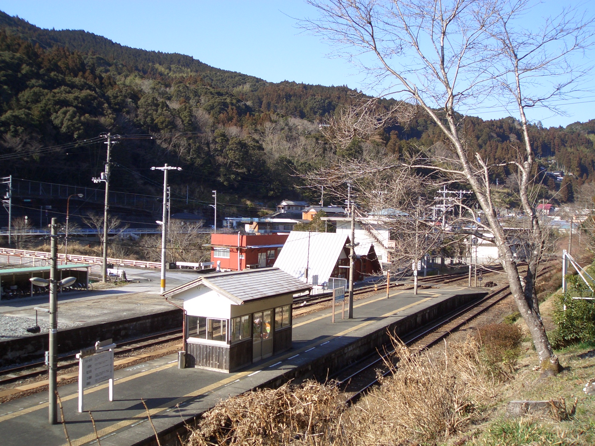 오타구치역은 시코쿠 여객철도 도산선에 있는 교환 가능역으로, 목조 평집 건물이며, 굽은 구간으로 인해 특급 열차가 감속 통과하고, 1934년에 개업하여 1970년 무인역이 되었다. - 도쿠시마현의 철도역 - 고보케역