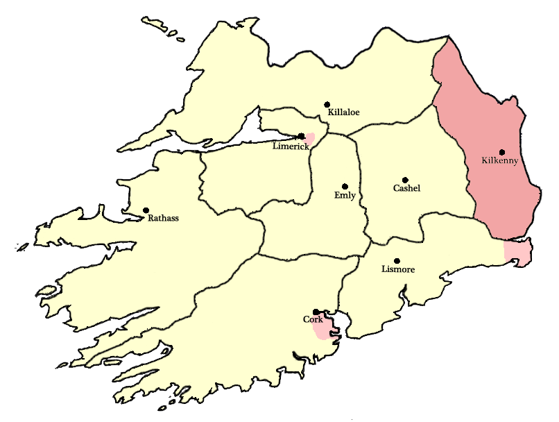 어퍼 오소리는 1537년 항복 및 재부여 정책에 따라 헨리 8세의 아일랜드 영주령에 편입, 맥 기올라 파드릭 가문은 어퍼 오소리 남작 작위를 받았다.[72] 버틀러 왕조는 남부 오스라거를 매입 또는 상속하여 오르몬드 백작령에 포함시켰고, 킬케니는 더블린에 이어 주요 영국 거점이 되었다.[73] 킬케니 법령이 제정되었으나 큰 효과는 없었다.