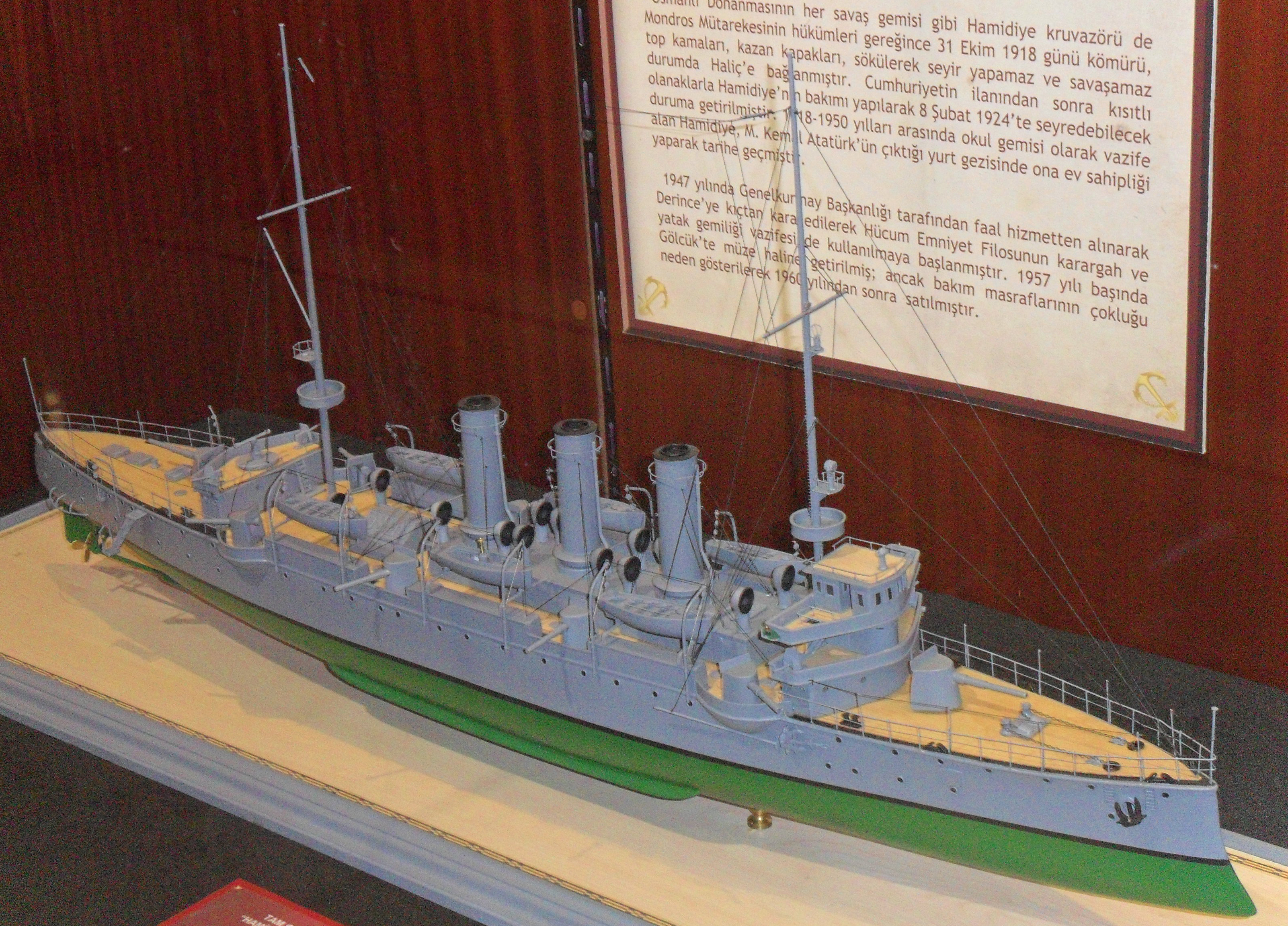 오스만 제국 해군의 순양함 ''하미디예''는 1901년 해군 증강 계획의 일환으로 영국의 암스트롱 휘트워스 사에 발주되어 1904년 준공되었다. 초기 함명은 술탄 압뒬하미트 2세의 이름을 딴 '압둘 하미트'(Abd-ul-Hamid|압둘 하미트tr)였으나, 1907년 '하미디예'로 변경되었다. 취역 초기에는 1908년 사모스 섬 봉기 진압, 1909년 3월 31일 사건 진압 지원 등 국내외 작전에 투입되었다.