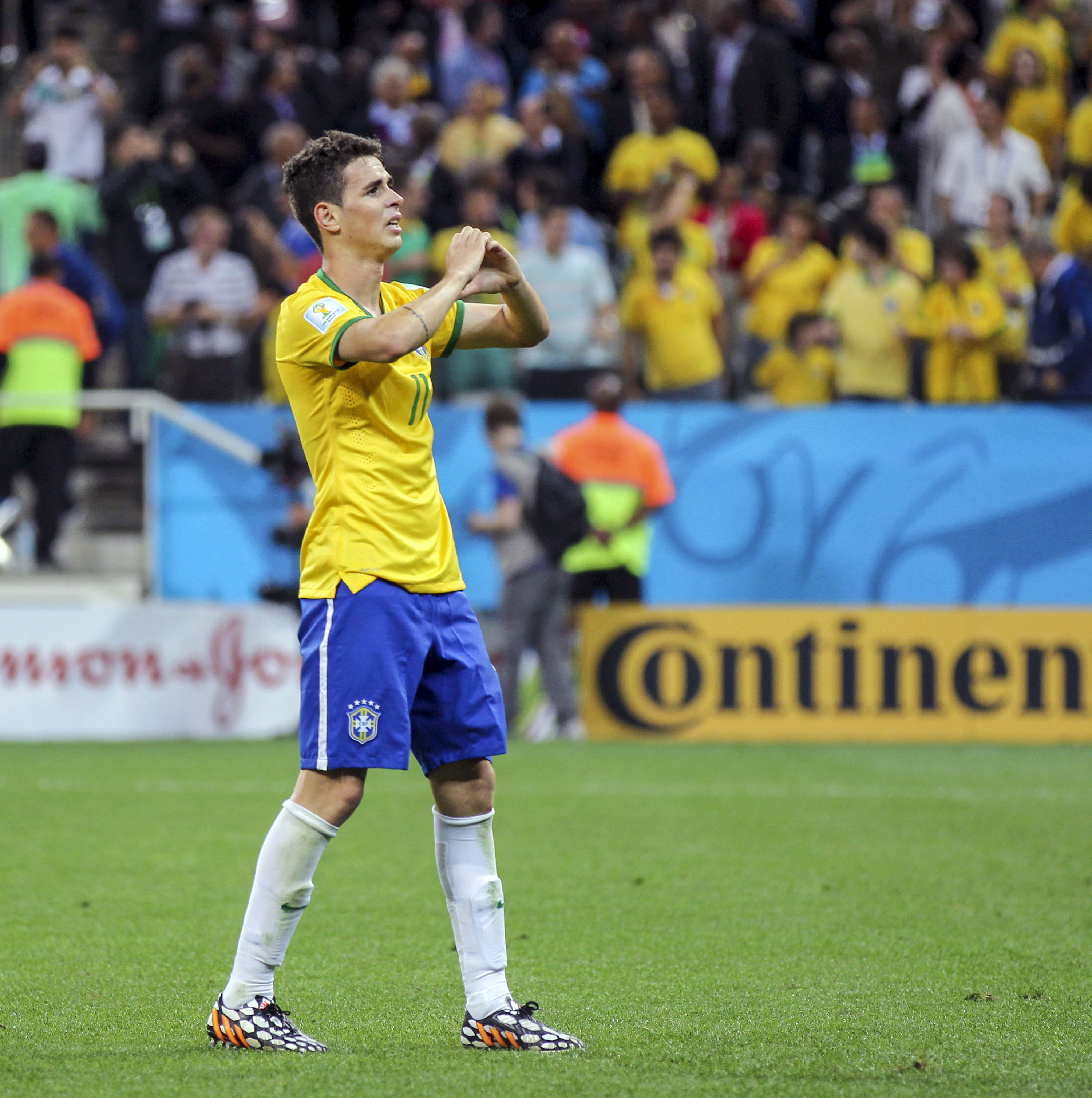 2014년 FIFA 월드컵 개막전 크로아티아와의 경기에서 오스카르는 경기 종료 직전 골을 기록하며 3-1 승리에 기여했다.[85] 브라질이 독일에게 7-1로 대패한 준결승전에서 오스카르는 브라질의 유일한 골을 넣었다. 치아구 시우바와 함께 그는 토너먼트 팀에 포함된 두 명의 브라질 선수 중 한 명이었다.[86]