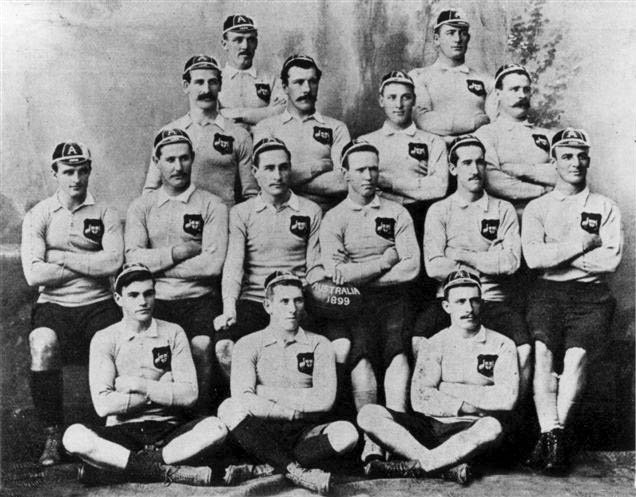 호주의 첫 국제 경기는 1899년 영국 및 아일랜드 연합의 호주 원정 경기였다. 첫 번째 테스트는 시드니 크리켓 그라운드에서 열렸으며 호주가 13-3으로 승리했지만, 원정팀이 나머지 세 번의 테스트에서 승리했다.[2] 첫 경기에 출전한 호주 대표팀은 퀸즐랜드 출신 6명과 뉴사우스웨일스 출신 9명으로 구성되었다.[3] 시드니에서 경기를 할 때는 뉴사우스웨일스의 파란색 유니폼을, 브리즈번에서 경기를 할 때는 퀸즐랜드의 진홍색 유니폼을 착용했지만, 각 식민지의 일반적인 문장 대신 호주의 문장이 새겨졌다.[4]