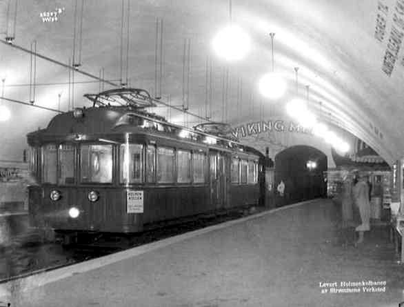 1912년 노르딕 국가 최초의 지하 철도 건설이 시작되어, A/S 홀멘콜바넨이 마요르스투엔부터 나시오날테아트레 역까지 2km 구간을 건설하였다. 이 노선은 1928년 개업하였으며, 중간역으로 발키리 플라스 역이 있었다.[61]