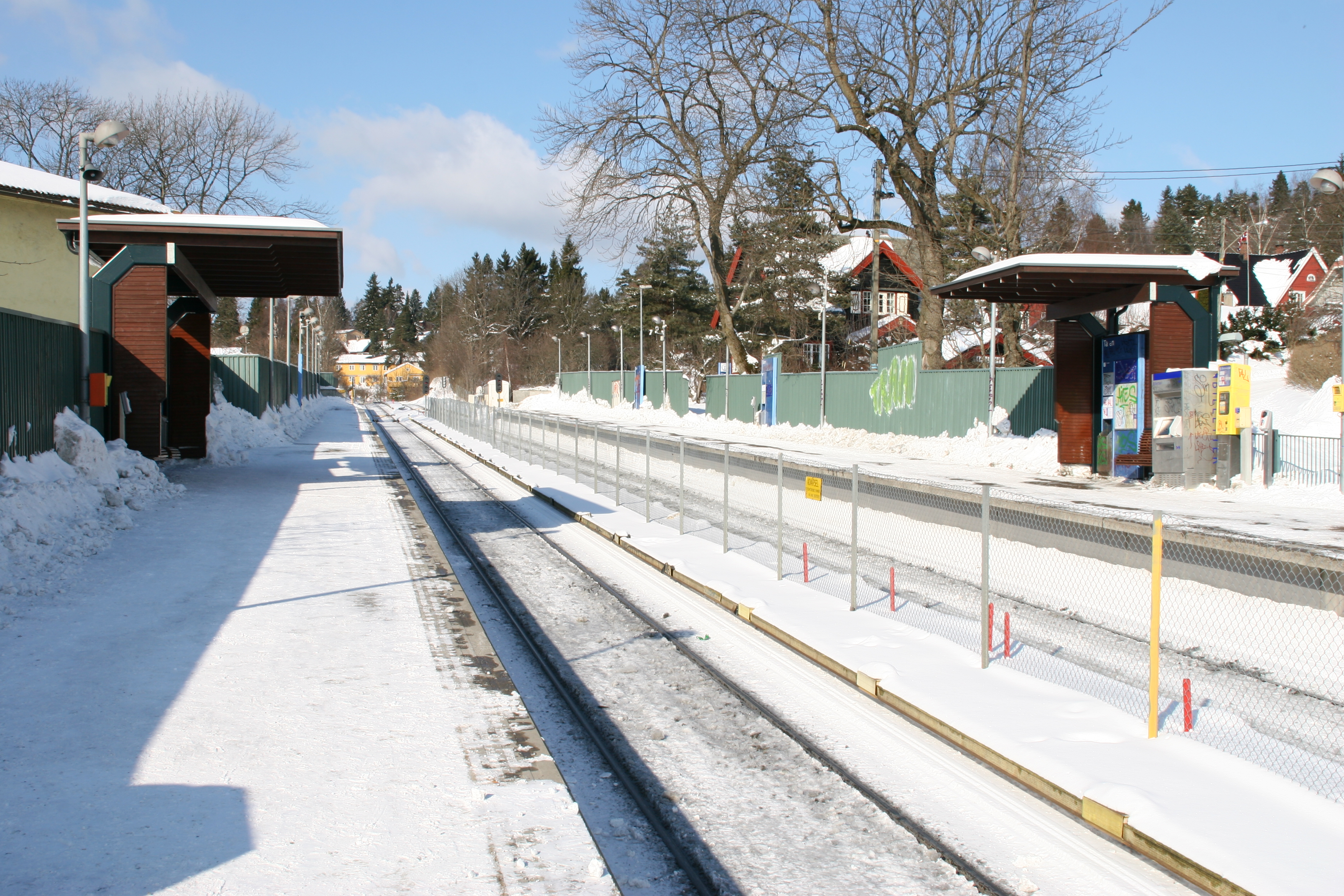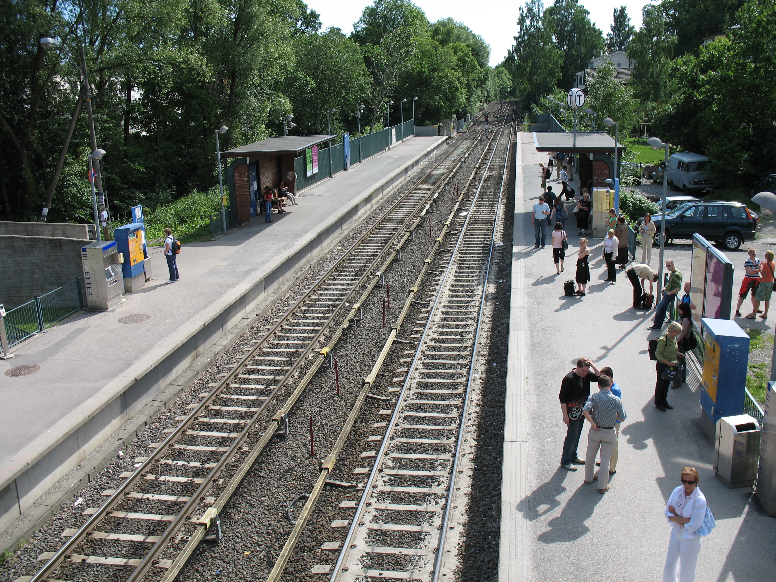 통근 열차는 오슬로에서 더 멀리 떨어진 교외 지역까지 운행하며, 철도 서비스로의 환승은 예른바네토르겟(오슬로 S)과 내셔널테아트레트에서 가능하다. 내셔널테아트레트 역의 경우 걸어가는 거리가 더 짧다.[43]