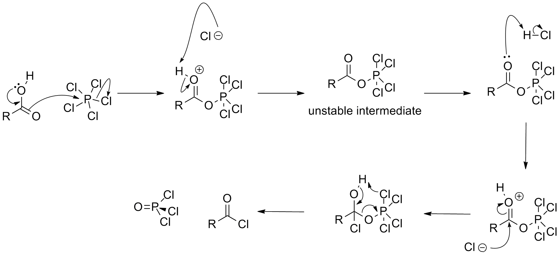 PCl5카복실산을 아실 클로라이드로 변환한다.[12][13]