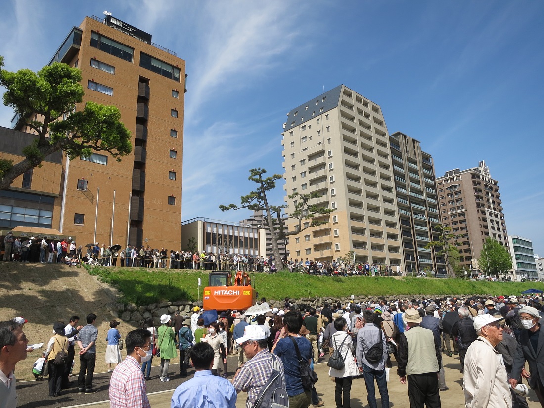 平和のシンボル 輝く〝復興碑〟 お城跡では盛大に地鎮祭
