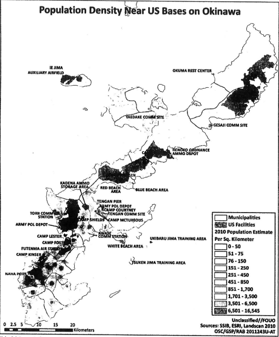 일본이 평화주의적 국가가 된 1947년 헌법에 따라, 미국은 외부 위협으로부터 일본을 보호할 의무가 있었다. 1945년 9월 2일 도쿄만에서 일본 제국의 항복 이후 이어진 미국의 일본 군사 점령(1945~1952) 기간 동안, 미국은 오키나와 섬과 나머지 류큐 제도를 통제했다. 아마미 제도는 1953년 일본에 반환되었고, 나머지 류큐 제도는 1971년 6월 17일에 반환되었다. 미국은 섬에 수많은 미군 기지를 유지했고, 1951년 미일 동맹 이후 오키나와 섬에는 32개의 미군 기지가 존재한다.[48] 오키나와 미군 기지는 한국 전쟁, 베트남 전쟁, 라오스 내전, 캄보디아 침공, 아프가니스탄 전쟁, 이라크 전쟁에서 중요한 역할을 수행했다.[14] 오키나와는 이 전쟁들의 주요 전진 기지 역할을 했다.[14] 오키나와의 항구와 공항은 물자 수송에 사용되었고, 나고 시 치넨 캠프 기지는 CIA의 비밀 작전에 사용되었다. 1965년, 율리시스 S. 그랜트 샤프 제독은 "오키나와 없이는 베트남 전쟁을 계속 수행할 수 없다"고 말했다.[14]
