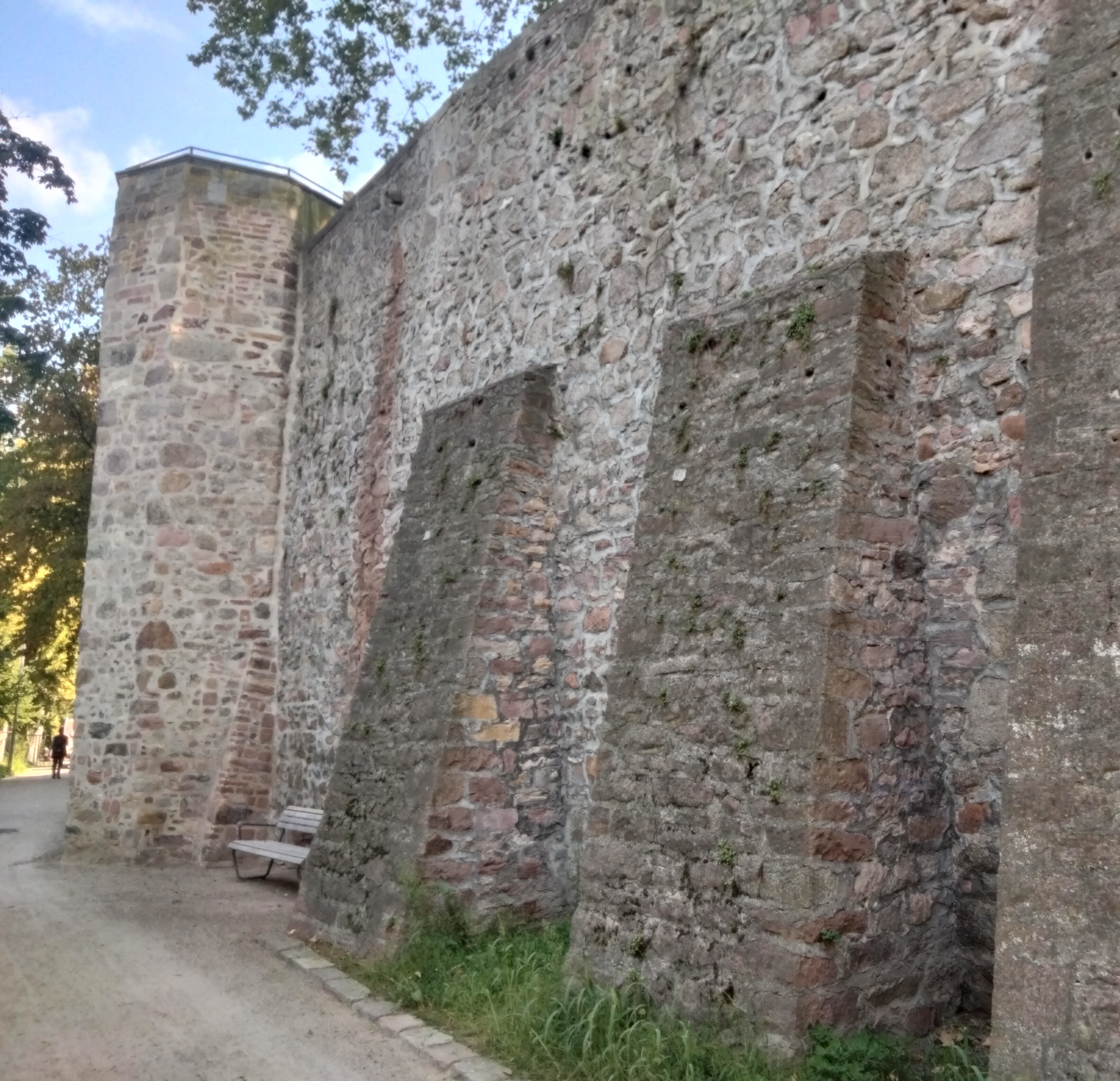 Information board on the wall, in German and French. The board can be seen at Wikipedia Commons ''Stadtmauer (Offenburg)''