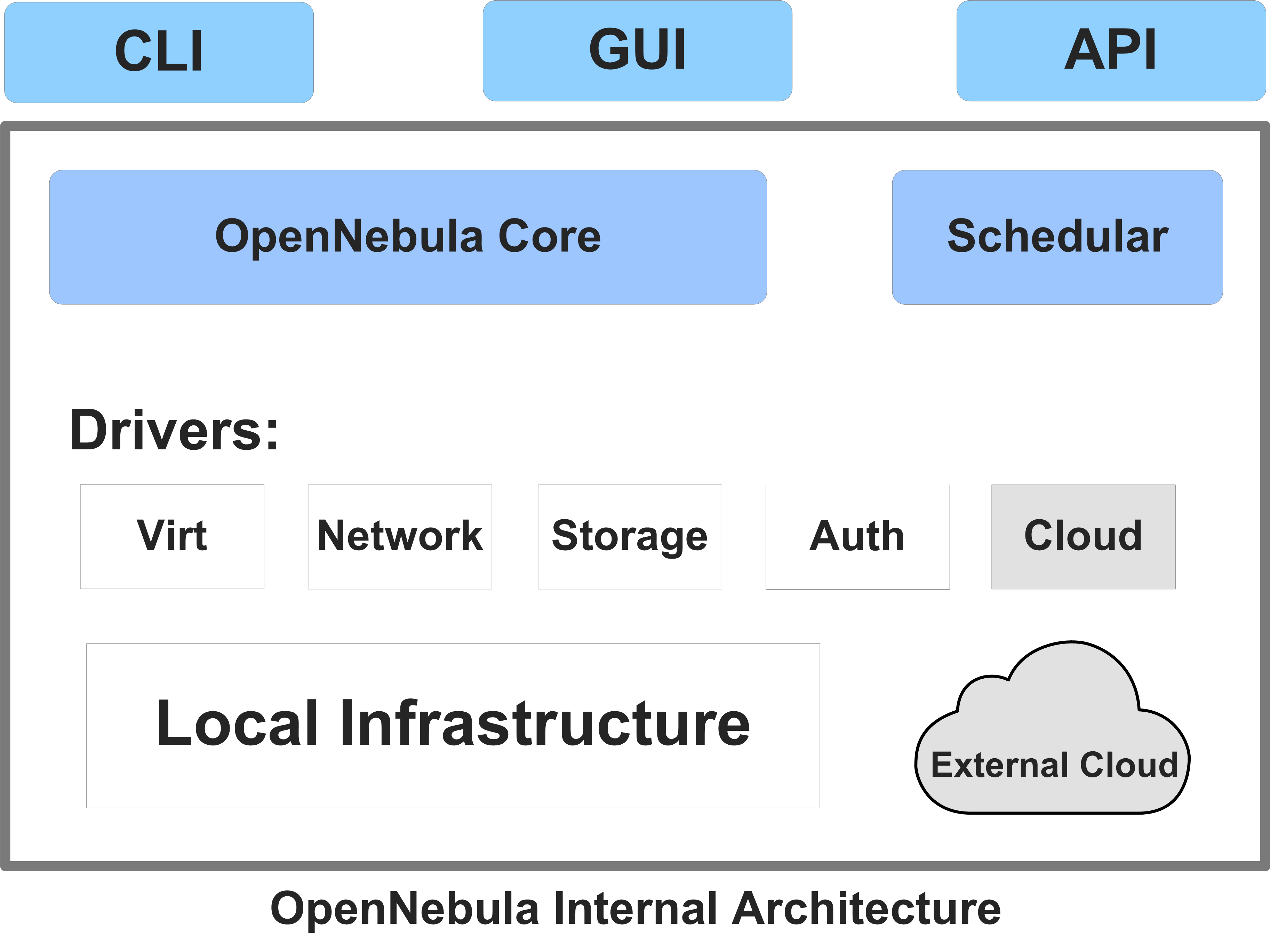 오픈네뷸라는 스토리지, 네트워크, 가상화, 모니터링 및 보안[6] 기술을 통합하여 분산 인프라에서 가상 머신으로 다계층 서비스(컴퓨팅 클러스터[7][8])를 배포하고 확장한다. 데이터 센터 리소스와 원격 클라우드 리소스를 결합하여 할당 정책에 따라 리소스를 최적화한다.[9]