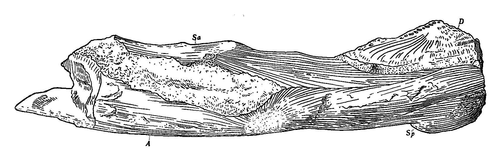 과거에는 턱이 짧고 넓으며 강력한 무는 힘을 가졌다고 여겨졌으나, 최근의 복원에 따르면 치골 결합부가 길고 약 15º 각도로 연결되어 턱이 긴 "V"자 모양을 이룬다.[2] 복원된 ''O. nevadanus''의 아래턱 길이는 50cm를 넘을 수도 있다.[6]
