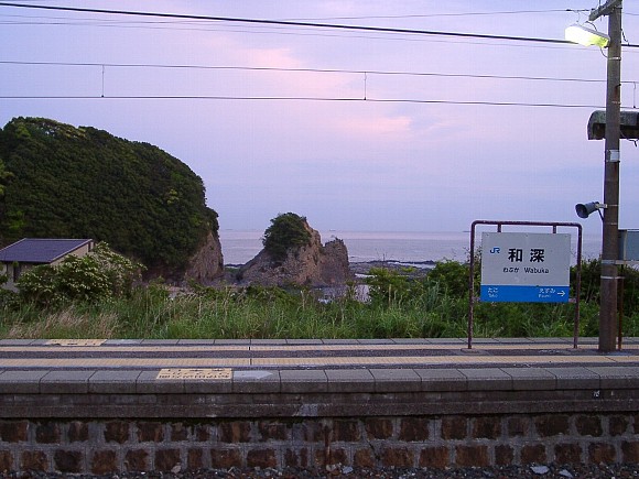 역 주변은 구마노 고키나다 해안 현립 공원에 속하며, 해안 부근은 고키나다라는 명승지이다. 역은 마을보다 높은 곳에 있어, 역 앞의 언덕길을 내려가면 주재소나 우체국 등이 있는 마을이 나온다. 해안가에 있는 역은 아니지만, 높은 곳에 있어 승강장에서 바다가 보인다.