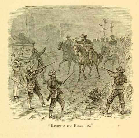 1855년 11월 21일, 노예제 찬성론자 프랭클린 N. 콜맨이 자유주 운동가 찰스 도우를 총으로 살해했다.[1] 콜맨과 도우는 로렌스 남쪽 히코리 포인트 근처의 토지 소유권을 두고 오랫동안 갈등을 빚어왔다.[1] "국경 전쟁 백과사전"에 따르면, "콜먼이 다우를 살해한 동기는 정치적인 것은 아니었지만, 이 살인은 그 후 10년 동안 캔자스를 특징짓는 폭력적인 정치적 분열의 시발점이 되었다."[2]어떤 기록에 따르면 콜먼은 캔자스로 이주한 후에야 노예제 찬성론자가 된 이전의 노예 폐지론자였다.[3] 콜먼은 도망쳤지만 웨스트포트, 미주리의 더글러스 카운티 보안관 새뮤얼 J. 존스에게 자수했다. 존스는 "가짜" 친노예제 정부의 후원으로 보안관이 되었다.[3] 콜먼은 정당방위를 주장했고, 존스는 브랜슨을 공공 질서 문란 혐의로 체포했다.[6] 그러나 새뮤얼 뉴잇 우드의 지도하에 자유주민들이 존스의 일행을 가로막고 브랜슨을 석방했다.[5]